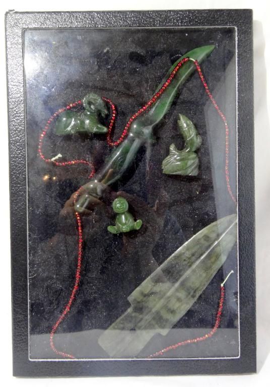 Hand Carved Eskimo, Ram, Fish on Rock, Large Arrow Head & Otter Shaped Knife 10oz 284grams Total Weight.