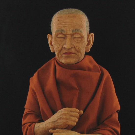 Intricately hand-carved and detailed fiberglass resin statue of famous Thai Buddhist Monk Sot. The piece is 12" and takes over one month of workmanship detailing every skin fold and feature. Hard to tell from a real person even very close up. Do lived from 1776 to 1861 and was the Buddhism educator of Thai king Rama IV.