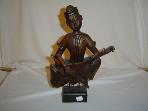 From Thailand, hand carved Thai Musician on stand, 12"H X 7"W X 3"D, antiqued finish.