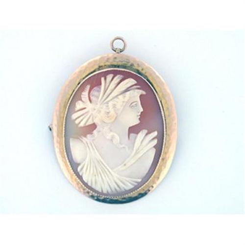 Lovely hand carved natural shell cameo in 10k yellow gold. This cameo weighs 12.9 grams and measures 1.75 inches high by 1.5 inches wide. Appraisal priced at $499. Cameos are one of the oldest forms of collectible art. The cameo process combines the artist's capabilities with the work of a goldsmith. The concept of cameos became popular during Greek and Roman times. It also became a traditional parting gift between mothers and daughters. Cameos remain today as one of the most sought after collectibles.