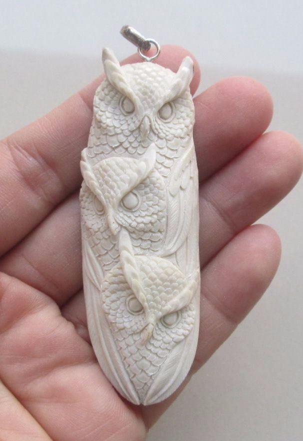 Hand Carved Owl Family Pendant on antler.....Size : 71 mm x 25 mm