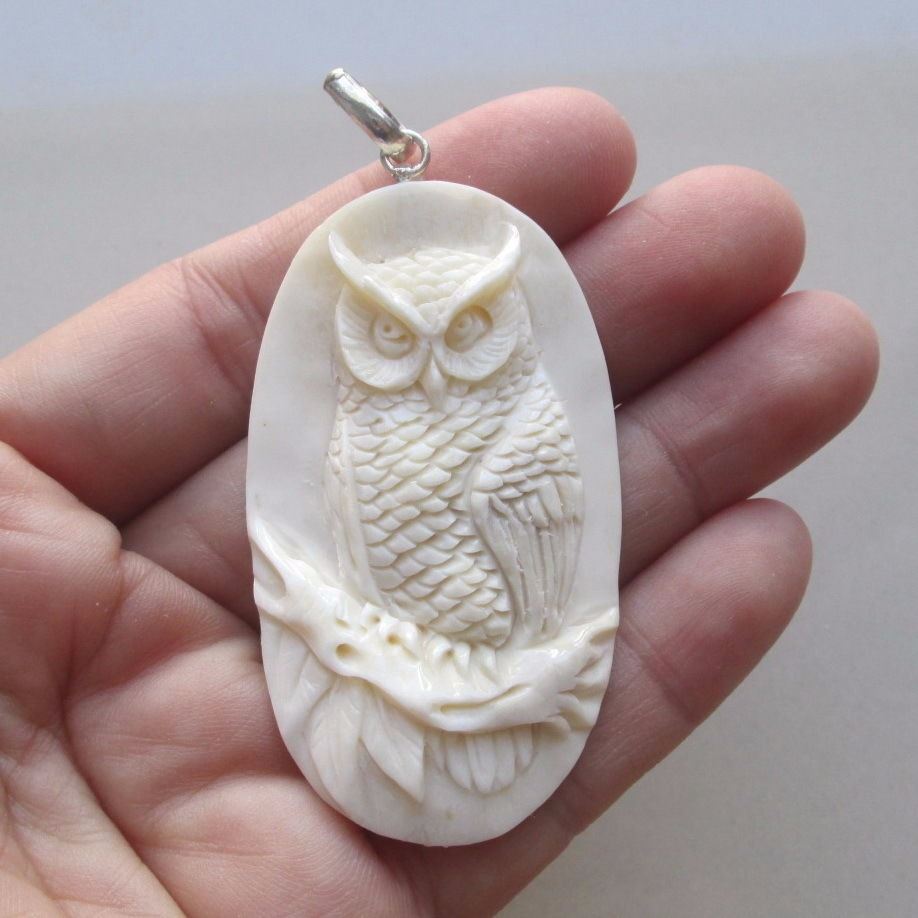 Hand Carved Owl Pendant...........Size : 58 mm x 33 mm
