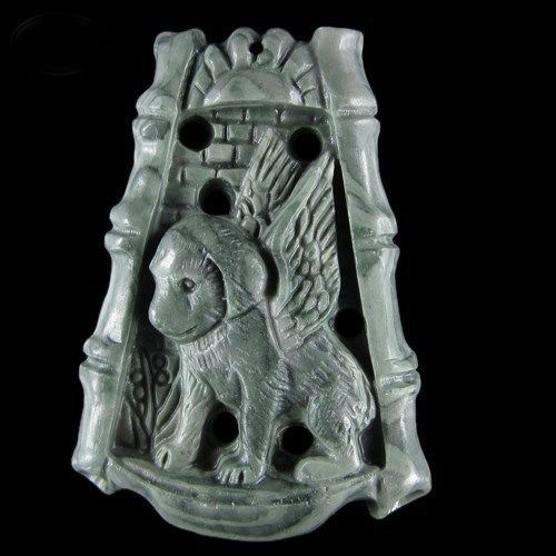Hand Carved Dog Pendant......;Stone Name Ribbon Jasper *Overall Dimension 64x46x10 mm (2.520x1.811x0.394 inch )mm *Weight 180 carat *Mohs Hardness 7 *Source Natural *Treatments None *Drilled YES diameter 2.5/36-3/36 inch *Other Names Banded Jasper Jasperine Ribbon Jasper Striped Jasper*This Dog Pnedant is carved out of one piece of gemstone Ribbon Jasper . This beauty is absolutely a unique center piece for your jewelry design. .