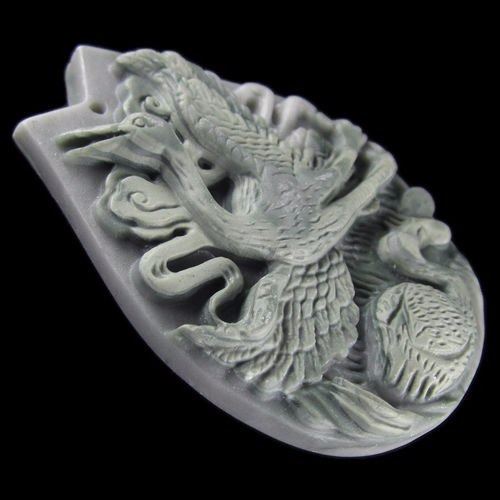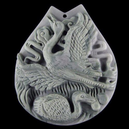 *This Bird Crane bead is carved out of one piece of gemstone Ribbon Jasper . This beauty is absolutely a unique center piece for your jewelry design. .*Stone Name Ribbon Jasper *Overall Dimension 62x52x10 mm (2.441x2.047x0.394 inch )mm *Weight 220 carat*Color coffee-greenish and purple strip - orbicular patterns *Mohs Hardness 7 *Source Natural *Treatments None *Drilled YES diameter 2.5/36-3/80 inch *Other Names Banded Jasper Jasperine Ribbon Jasper Striped Jasper