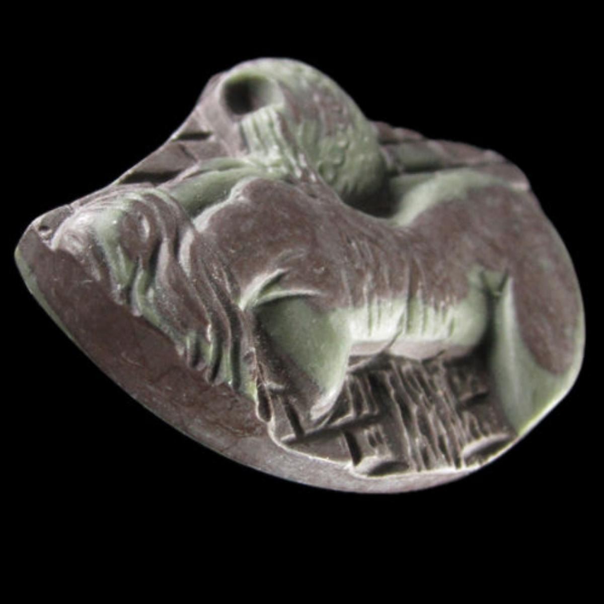 Hand Carved pendant...Stone Name Ribbon Jasper *Overall Dimension 60x43x9 mm (2.362x1.693x0.354 inch )mm *Weight 165 carat*Mohs Hardness 7 *Source Natural *Treatments None *Drilled YES diameter 2.5/36-3/36 inch **This Pendant is carved out of one piece of gemstone Ribbon Jasper . This beauty is absolutely a unique center piece for your jewelry design. .