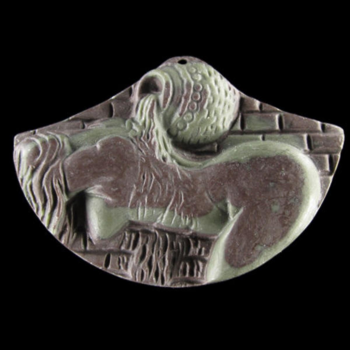 Hand Carved pendant...Stone Name Ribbon Jasper *Overall Dimension 60x43x9 mm (2.362x1.693x0.354 inch )mm *Weight 165 carat*Mohs Hardness 7 *Source Natural *Treatments None *Drilled YES diameter 2.5/36-3/36 inch **This Pendant is carved out of one piece of gemstone Ribbon Jasper . This beauty is absolutely a unique center piece for your jewelry design. .