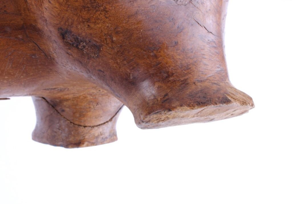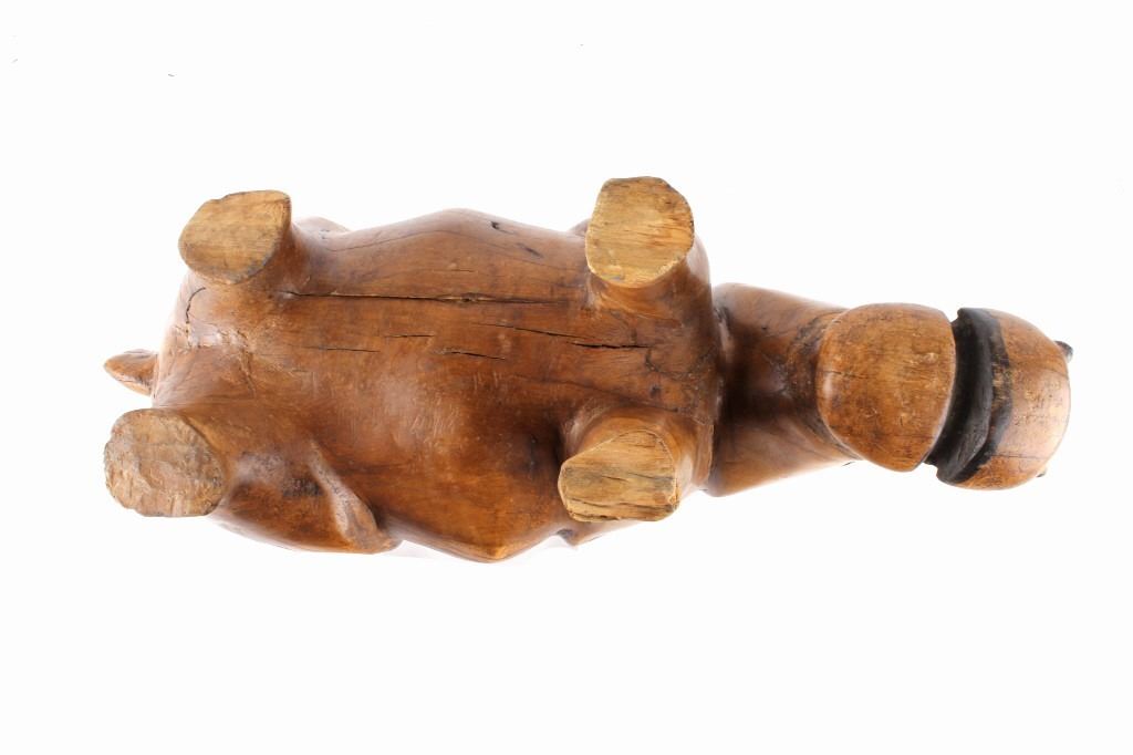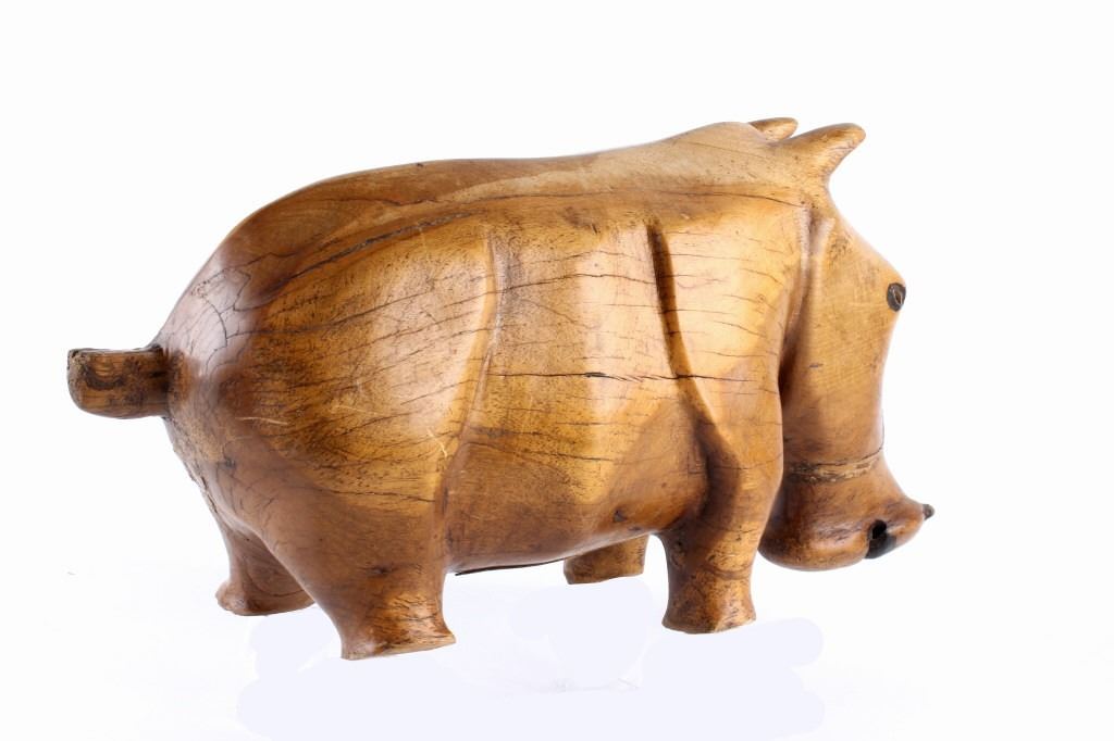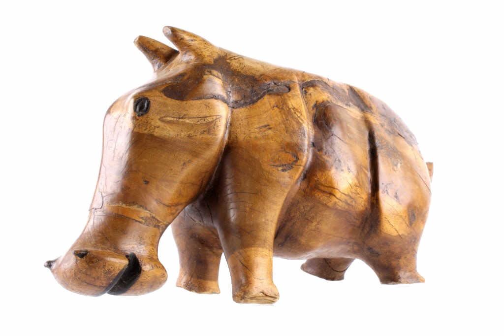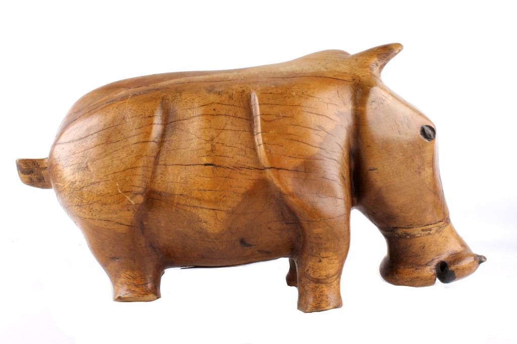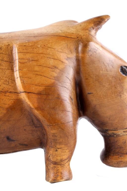 For your consideration is this hand carved and polished hippo made from acacia circa 1930's. This is a good representation of a hippopotamus with a great contrasting coloration from the example of acacia hardwood. The condition of this hand carved hippo is good with no obvious signs of damage, there are natural fractures from the hardwood settling but in good overall condition. The measurements of this hippo are 15" x 26" x 8 1/2".