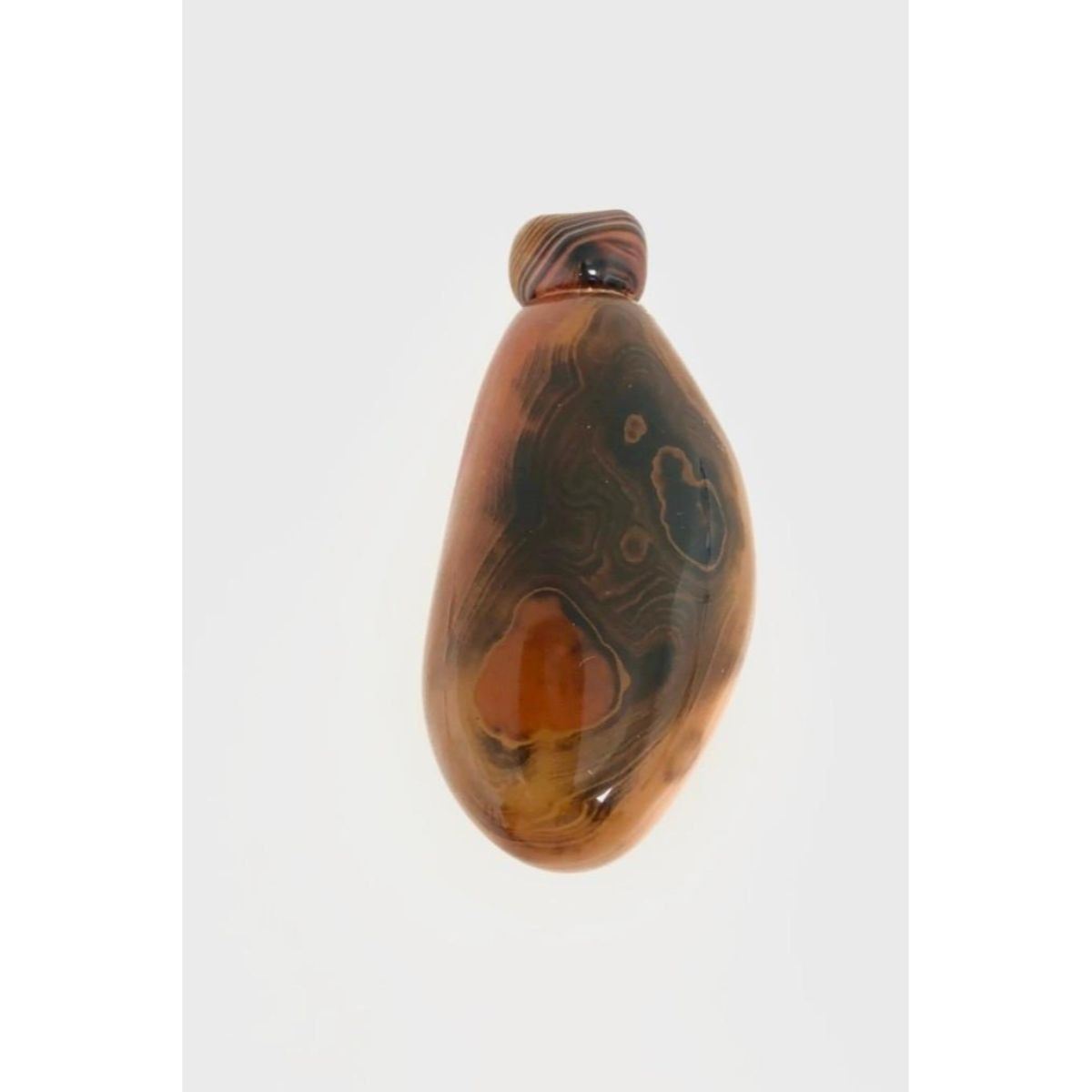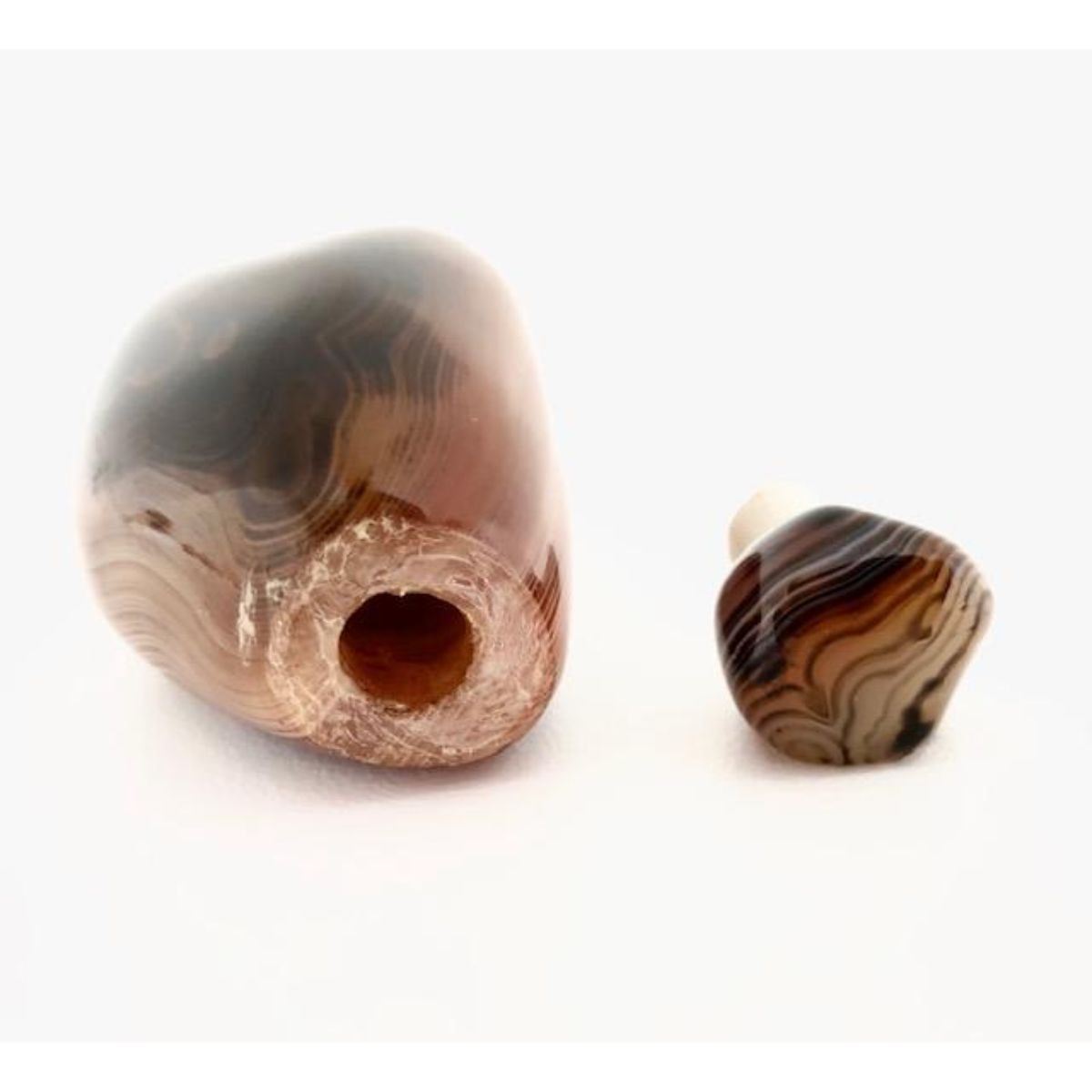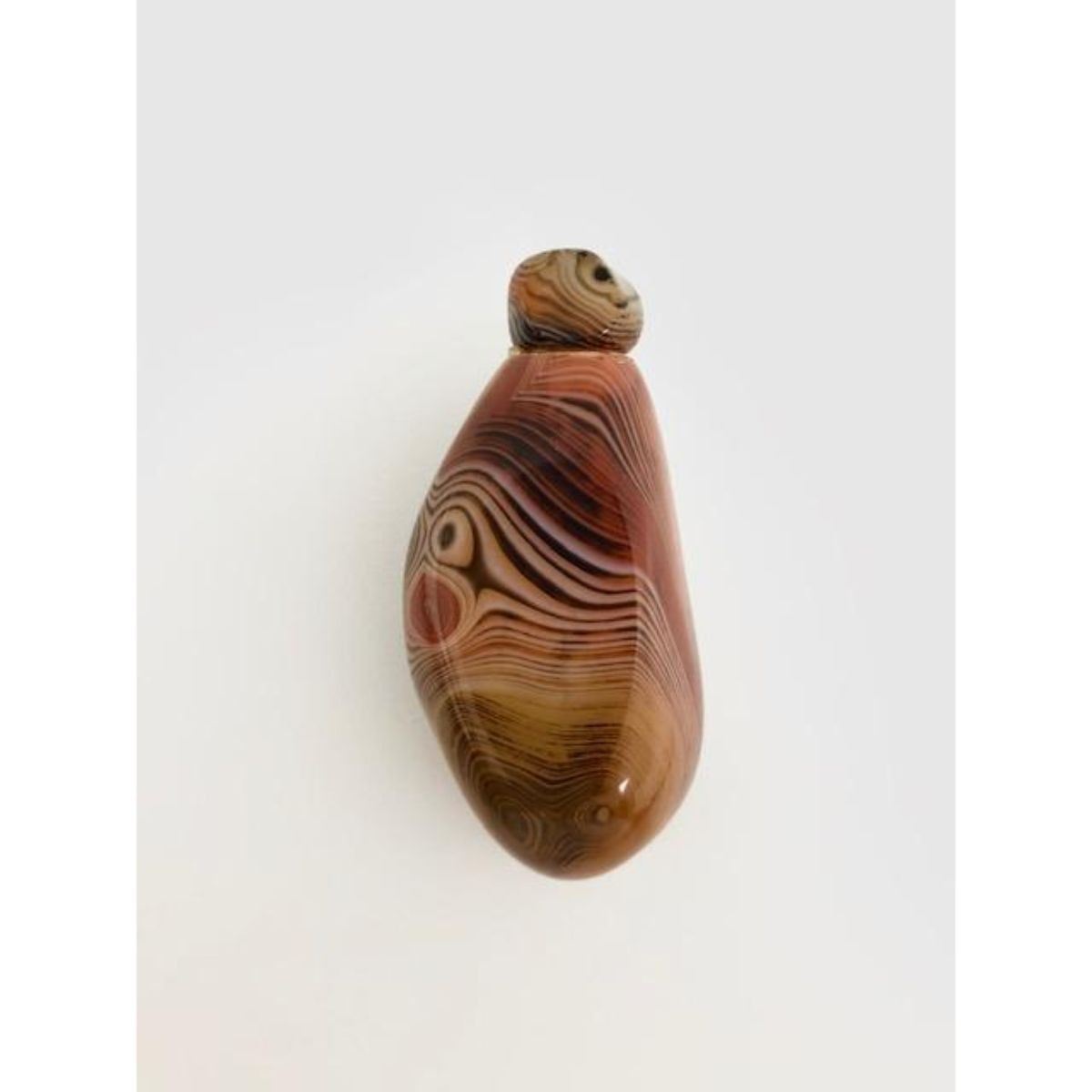 Hand-Carved Sardonyx Banded River Agate Snuff Bottle With Stopper. Used as a stone of strength and protection since ancient times, sardonyx is associated with courage, happiness and clear communication. It brings lasting happiness and stability to marriage and partnerships. The spiritual values of red and white-banded and red bullseye sardonyx make these stones particularly powerful. View Photos For More Details