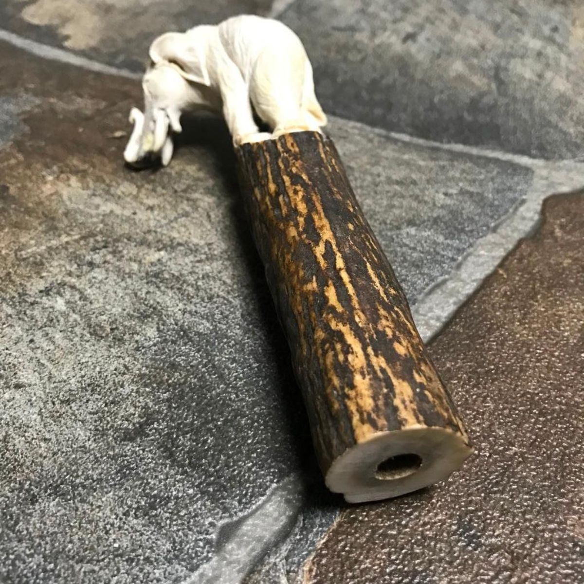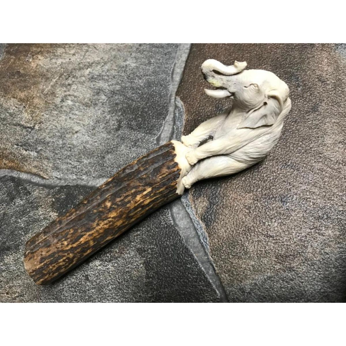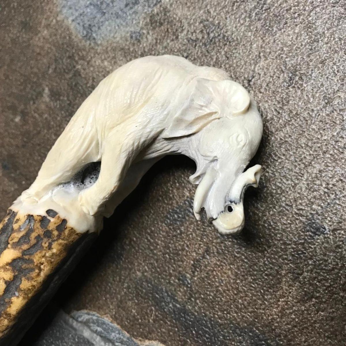 Hand-carved shed deer antler, in the form of an African Elephant, display piece or cane or dagger handle. 6" L X 2 1/2" W.Â