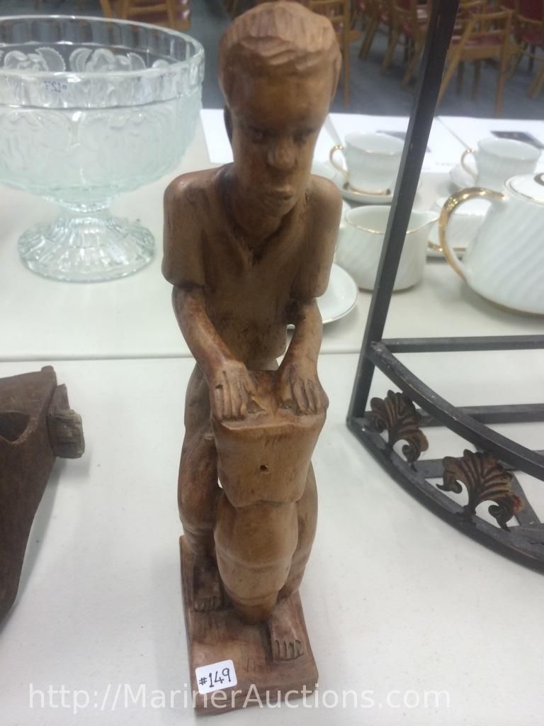 Hand Carved Solid Wood Drummer Sculpture (12" high)