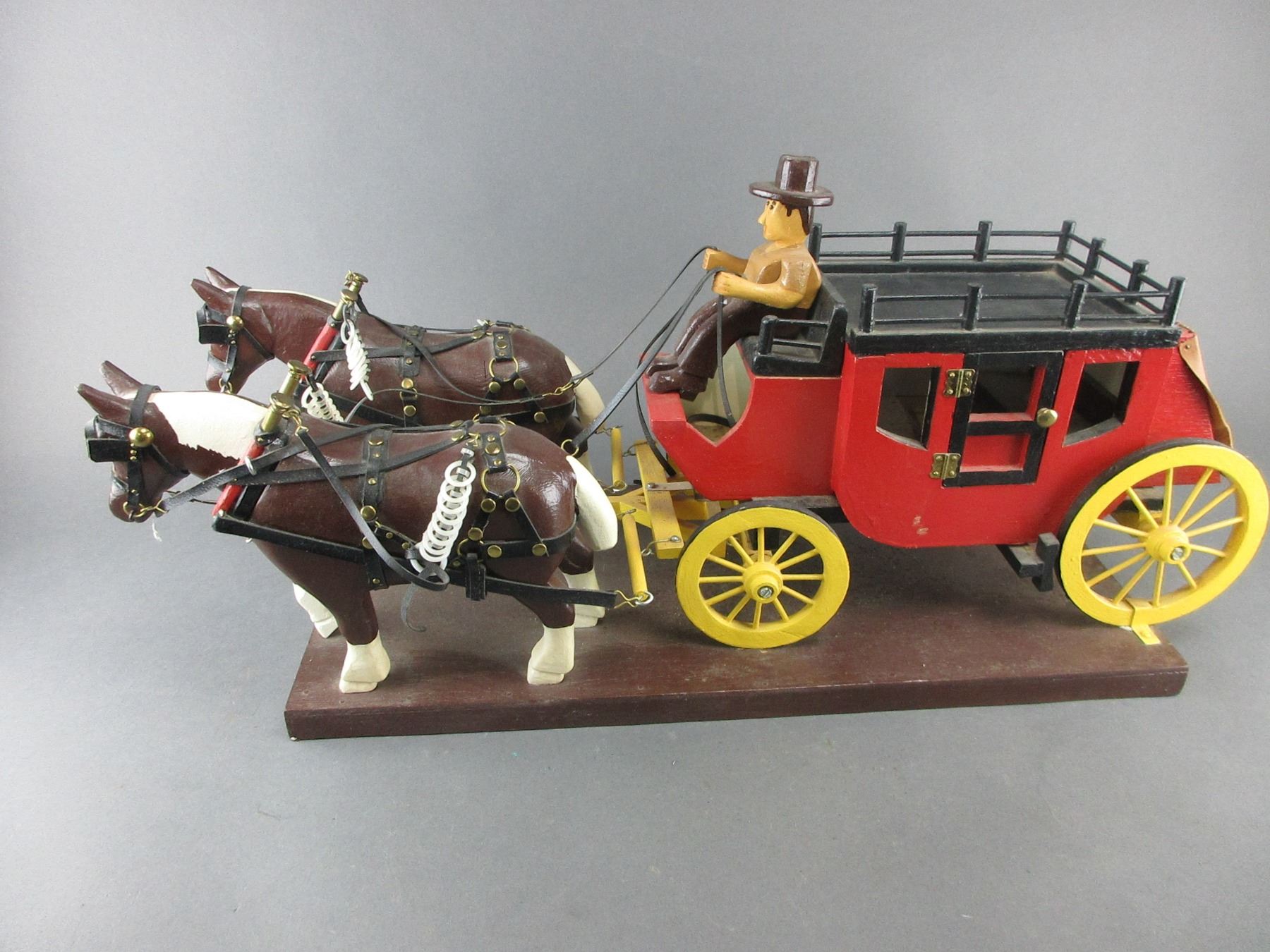 Hand Carved Stage Coach With Team- 12.5"H X 26"L X 10"D