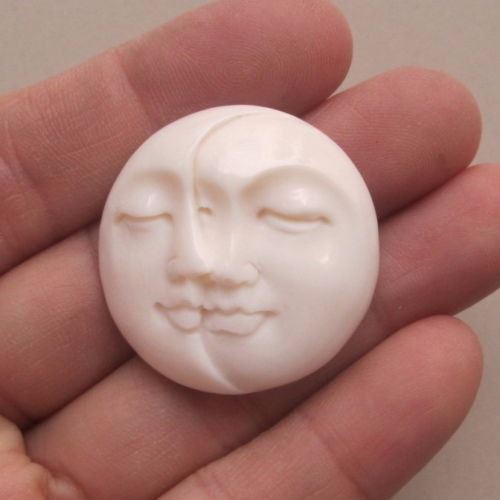 Hand Carved Sun & Moon Pendant with hole in the back.......size 31 mm Diameter