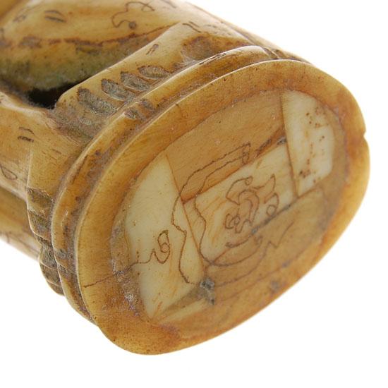 Excellent hand carved vintage piece on boar bone, 2.5"