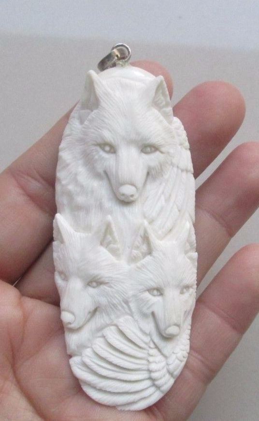 Hand Carved Wolf Family Pendant............Size : 78 mm x 33 mm