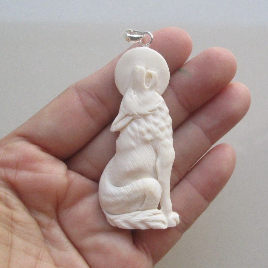 Hand Carved Wolf Pendant.....Size : 61 mm x 28 mm