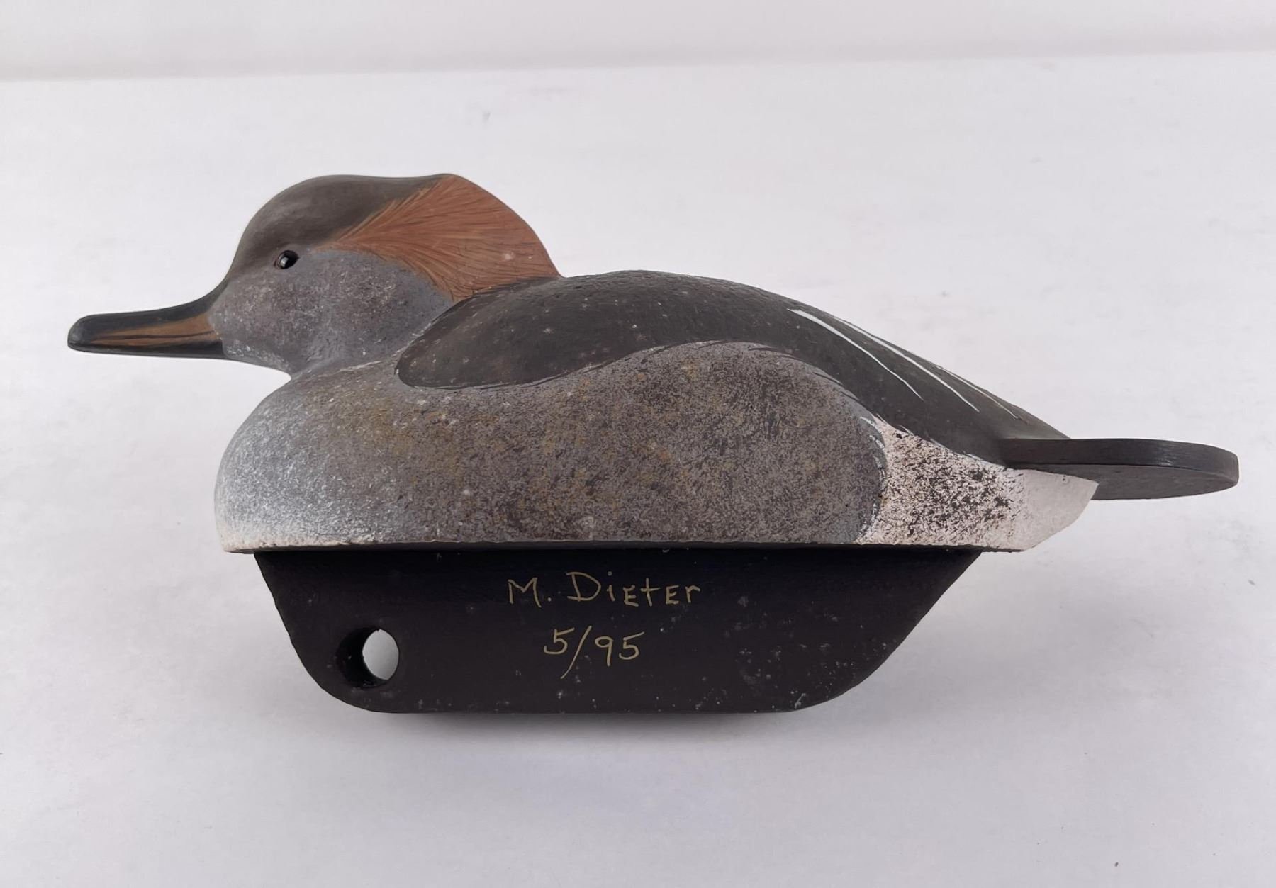 5 1/4" tall, 5 3/4" wide, 12" long. Signed M. Dieter.