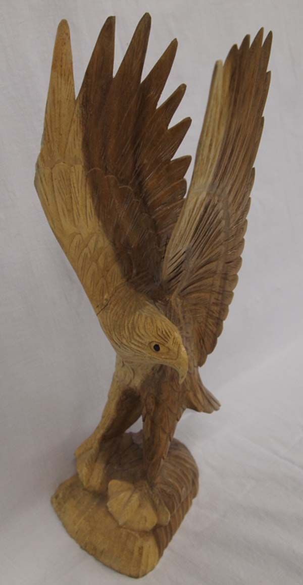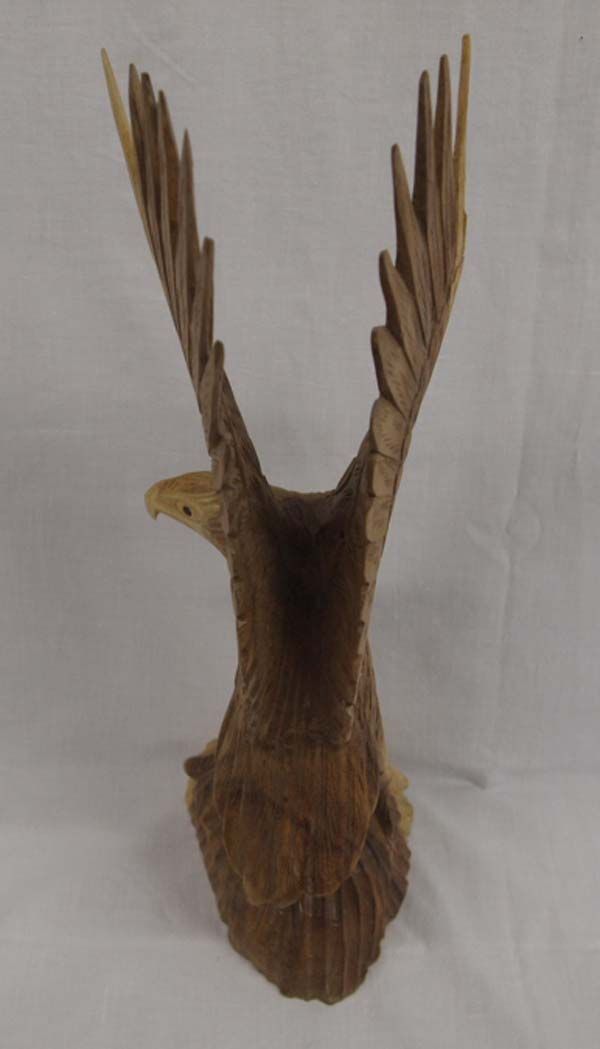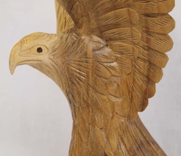 Hand Carved Wood Eagle Sculpture, measures 14.75''H x 6''W, intricate details
