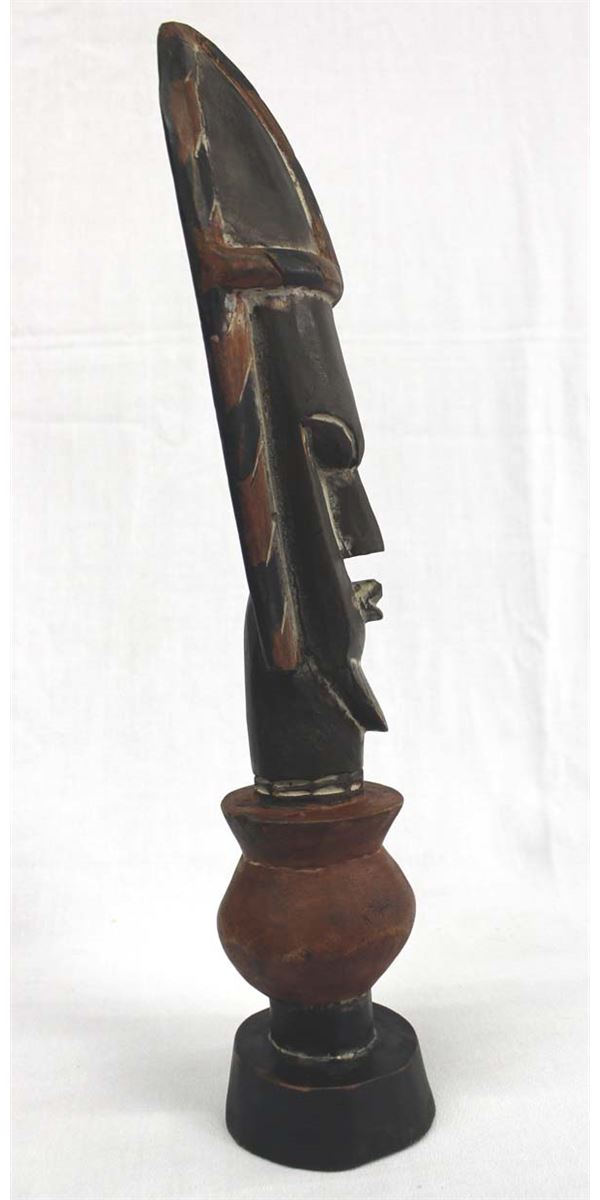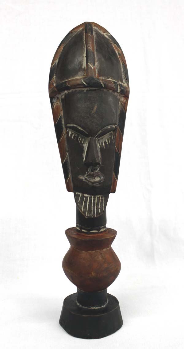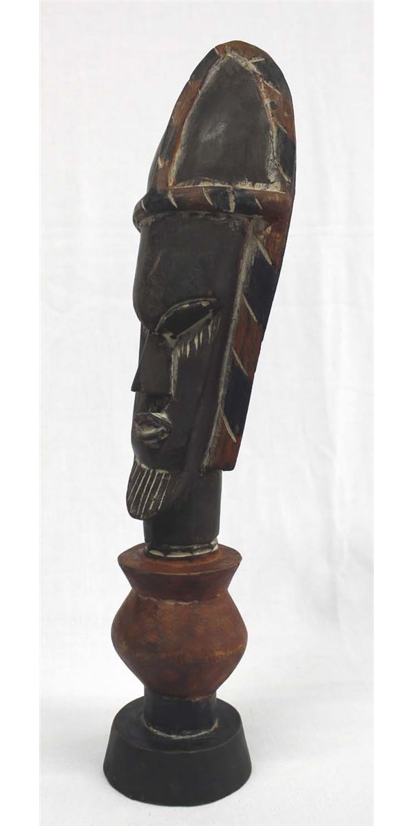 Hand Carved Wood Mask from Ghana, on pedestal, measures 18"H