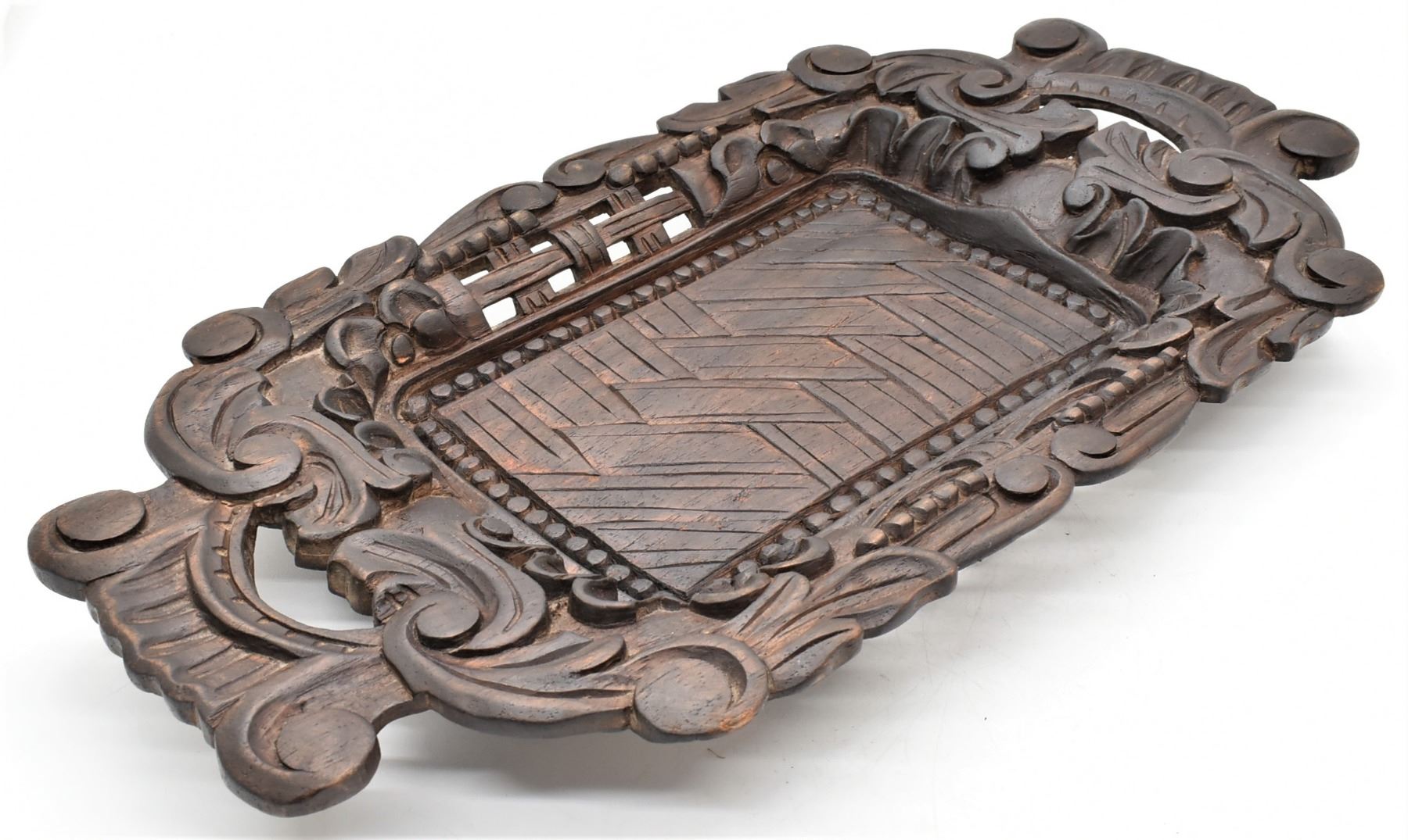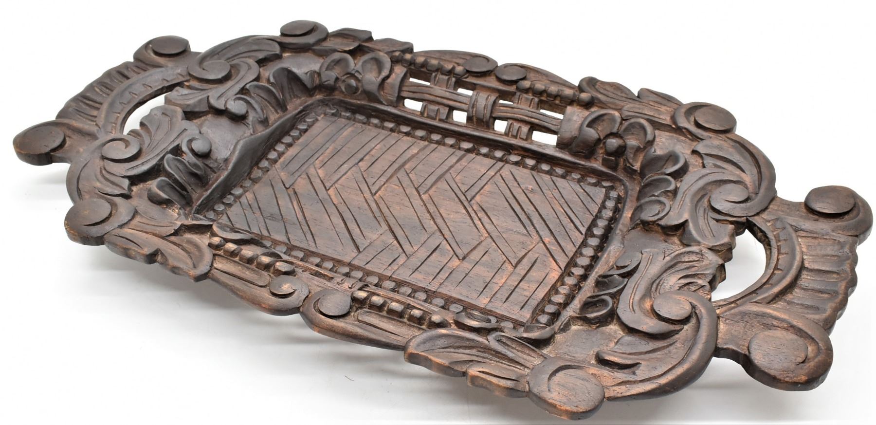 Hand Carved Wood Tray, double handles, very ornate, measures 9.5'' x 18'', beautiful