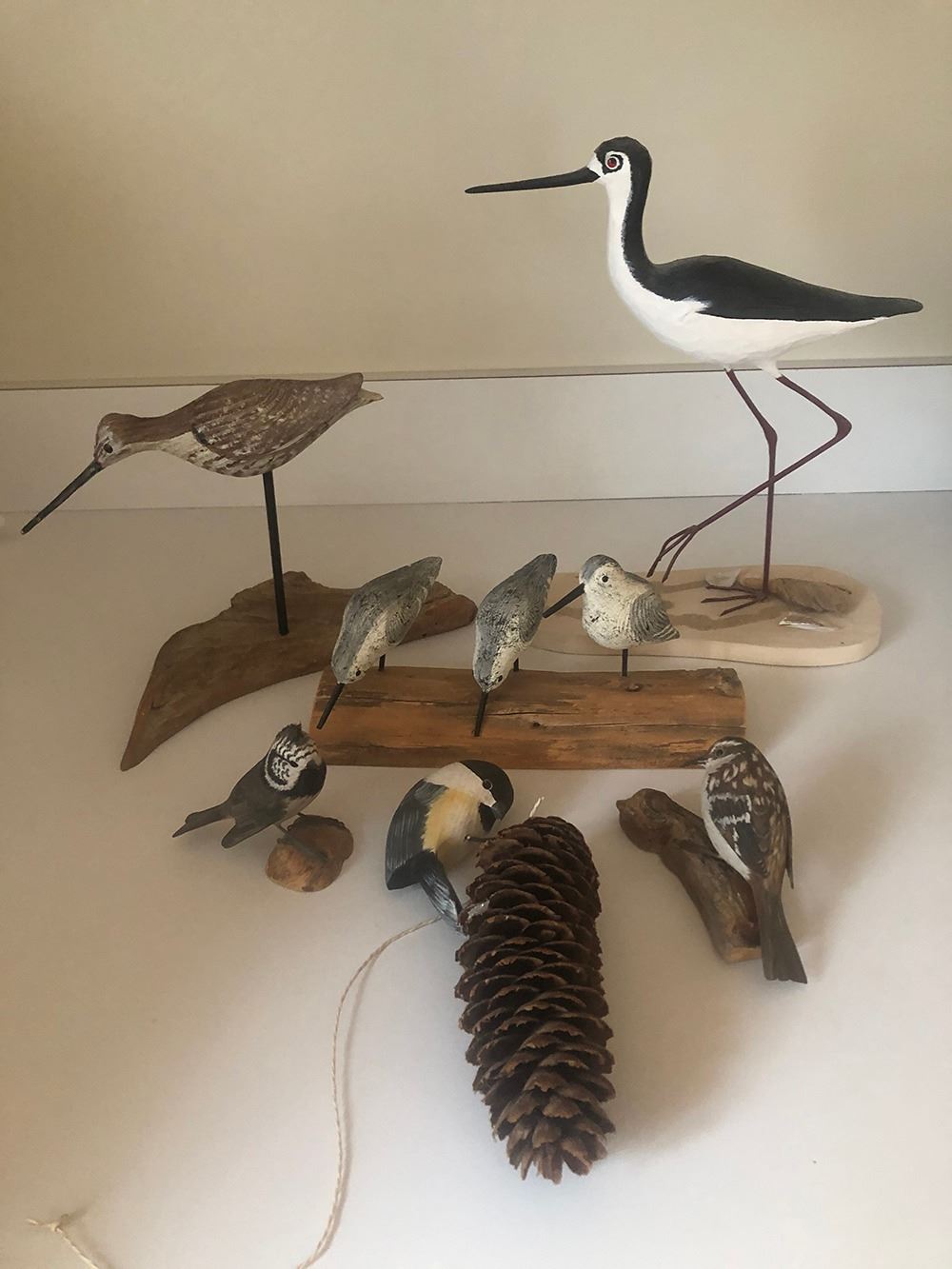 Estate collection of hand carved birds including water birds.