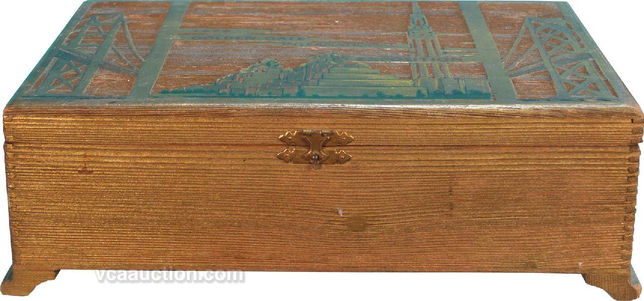 Hand Carved Wooden Cigar Box, "1939 Golden Gate International Exposition" - 16" x 11" x 5" tall
