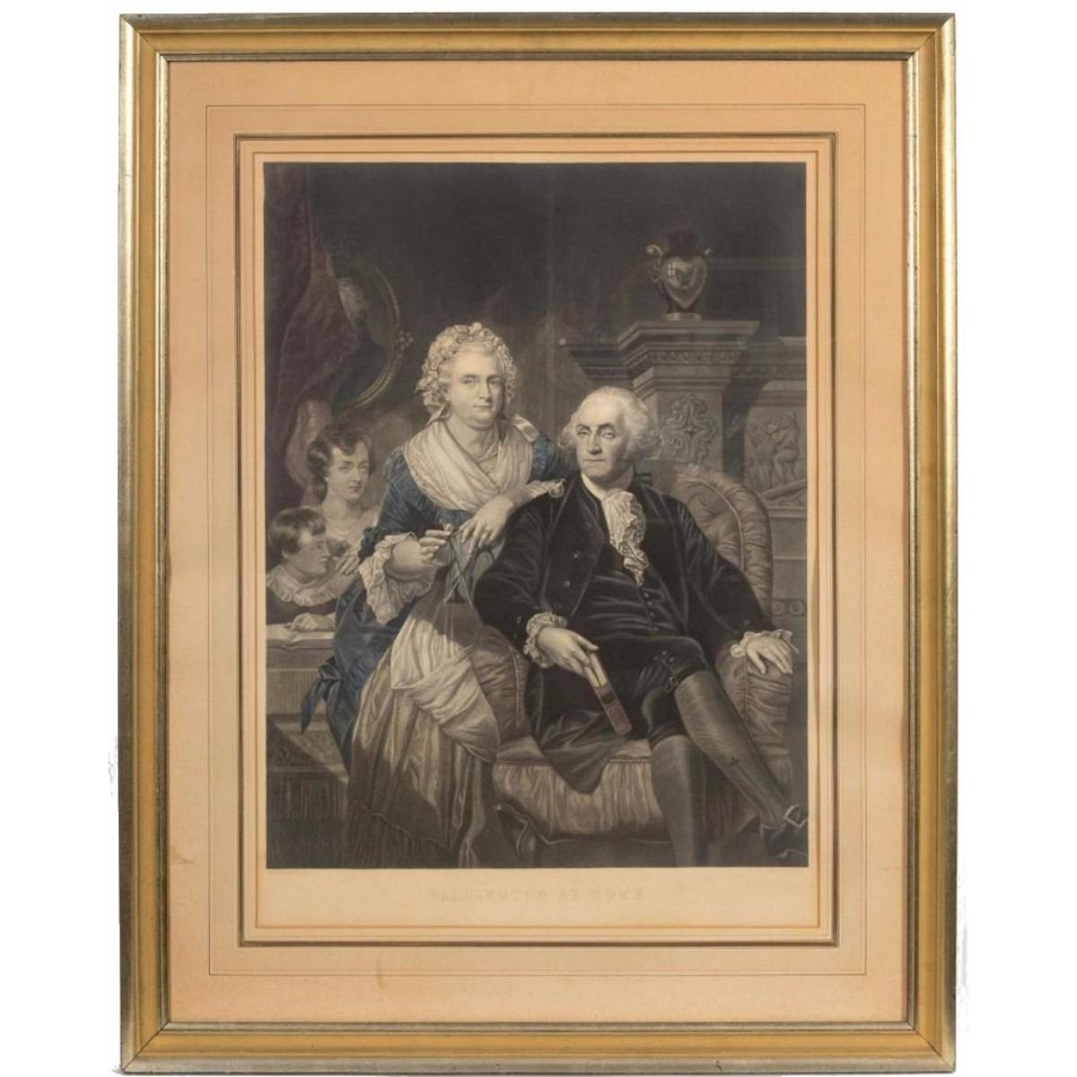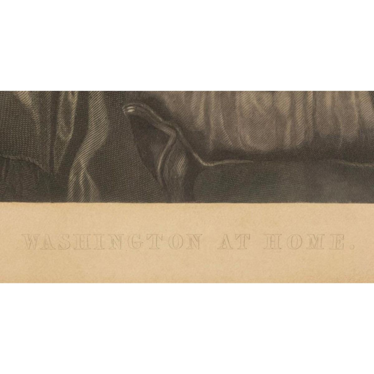Description - Antique hand colored engraving by H.B. Hall titled "George Washington at Home" Dimensions - Frame - 34.5" x 27" Sight - 25" x 18.5" CONDITION Toning and discoloration from age.