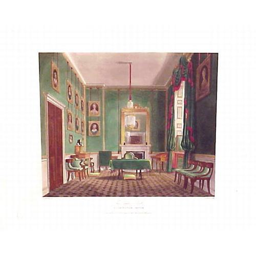 A beautifully coloured print from "The History of the Royal Residences...," William Henry Pyne's comprehensive collection of plates depicting the interiors of Windsor Castle, St. James's Palace, Carlton House, Kensington Palace, Hampton Court, Buckingham House, and Frogmore.See others