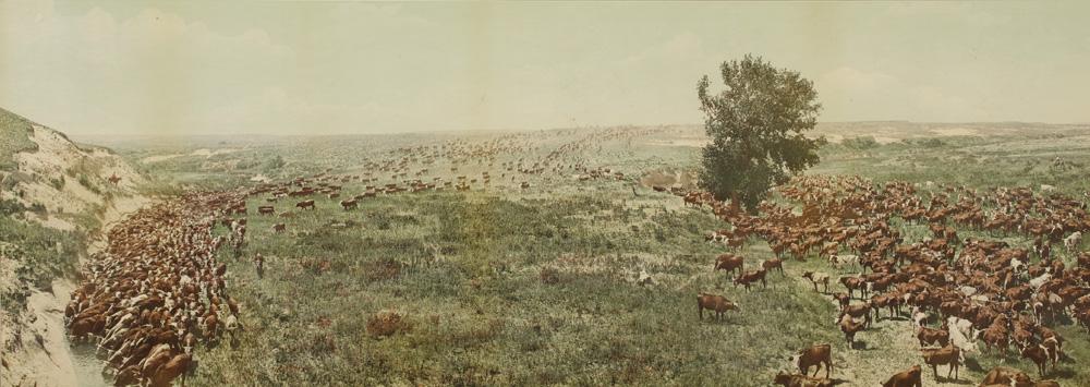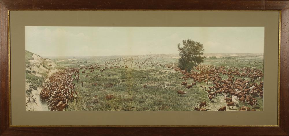 40 x 14 1/4 oak frame and matted to 50 x 23 1/2 attributed to Wm Henry Jackson depciting a round-up on the JA Goodnight ranch, crica 1900 in the Paloduro Canon40” x 14 1/4” oak framed and matted to 50” x 23 1/2” attributed to Wm Henry Jackson depicting a round-up on the JA Goodnight Ranch, c 1900 in the Palo Duro Canyon (TX)