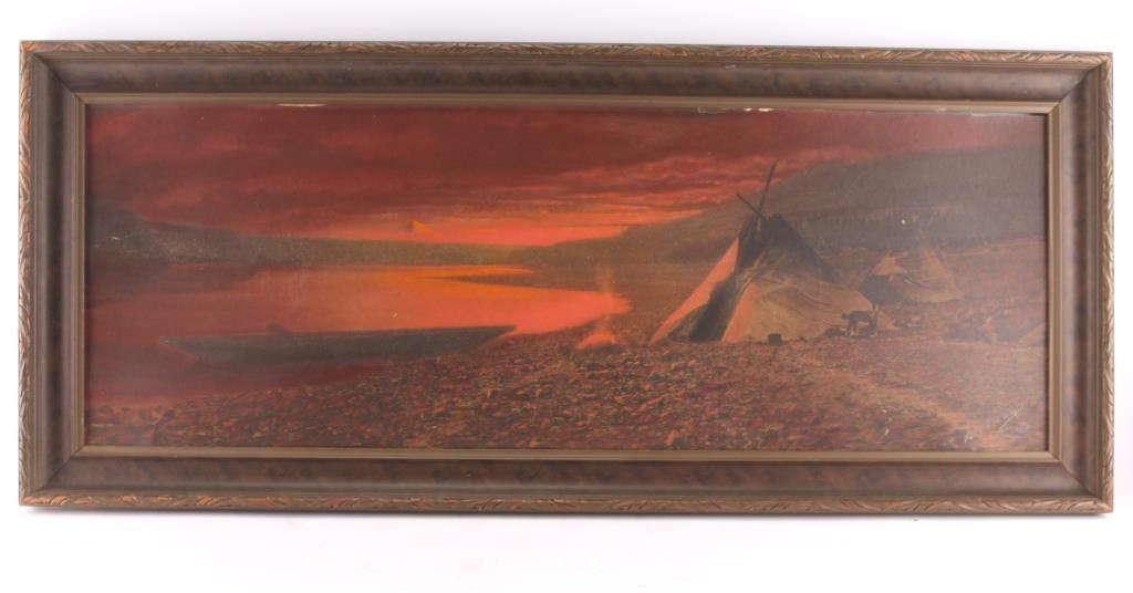 by Ben Gifford entitled Indian Incampment. Measures 40"x14".