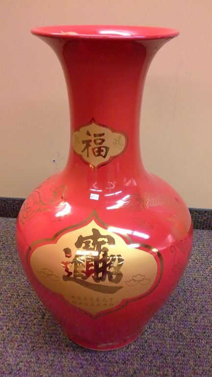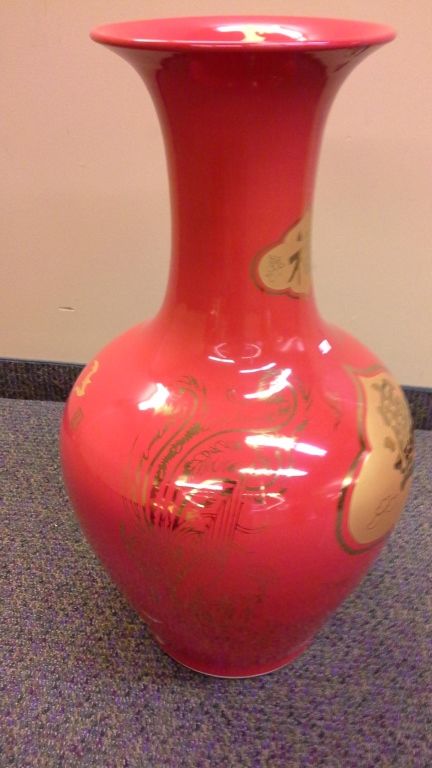 Hand Crafted Chinese Porcelain Red/Gold Vase (32.5" high)