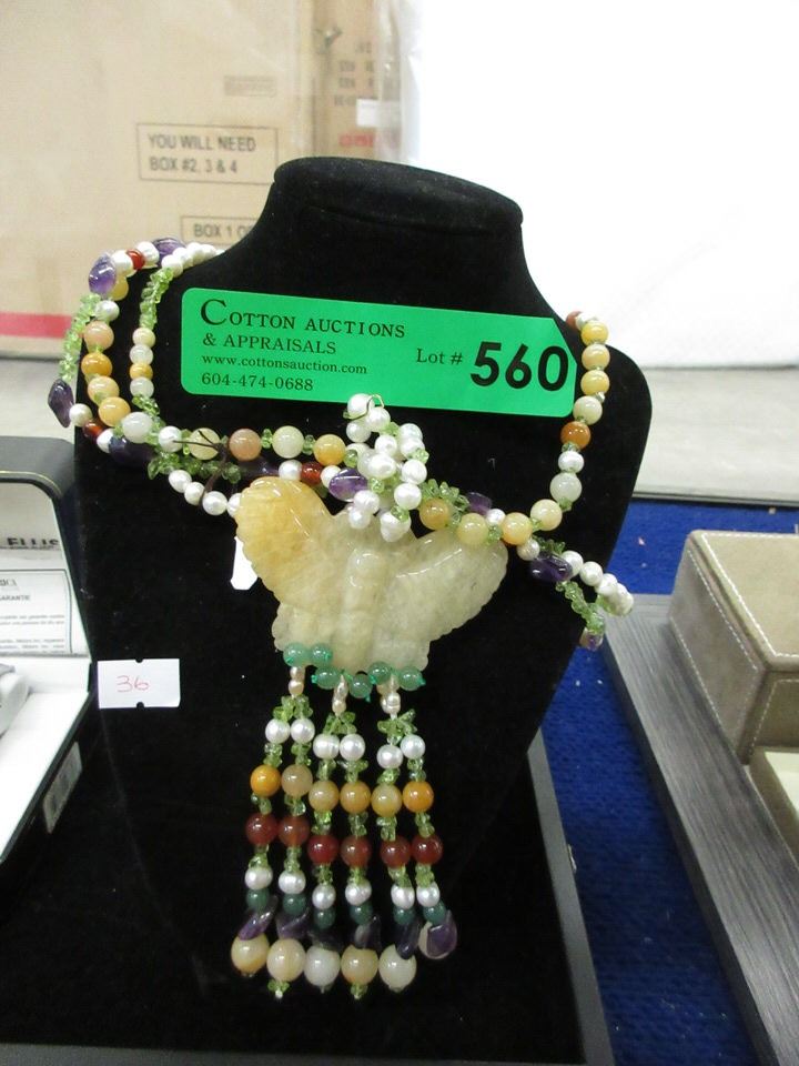 Carnelian, Amethyst, Pearls Peridot and more. Pendant is 3" x 5". Triple Stand Necklace.