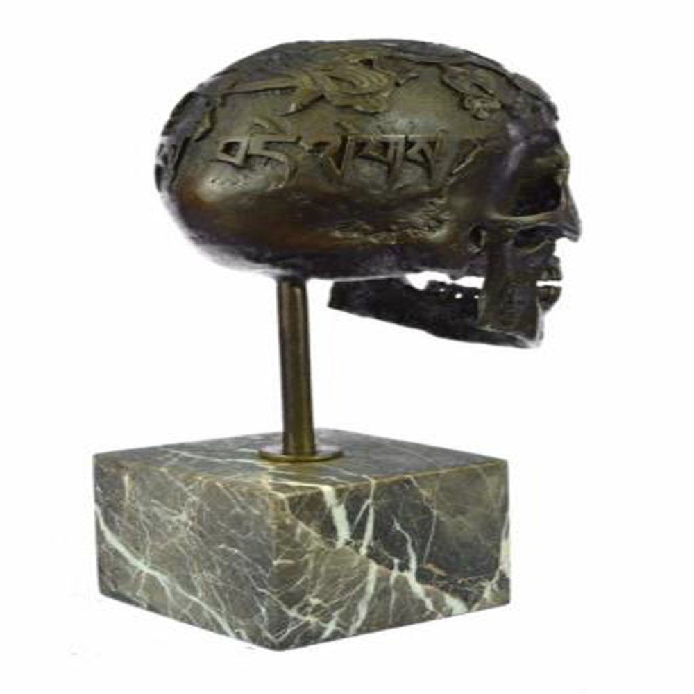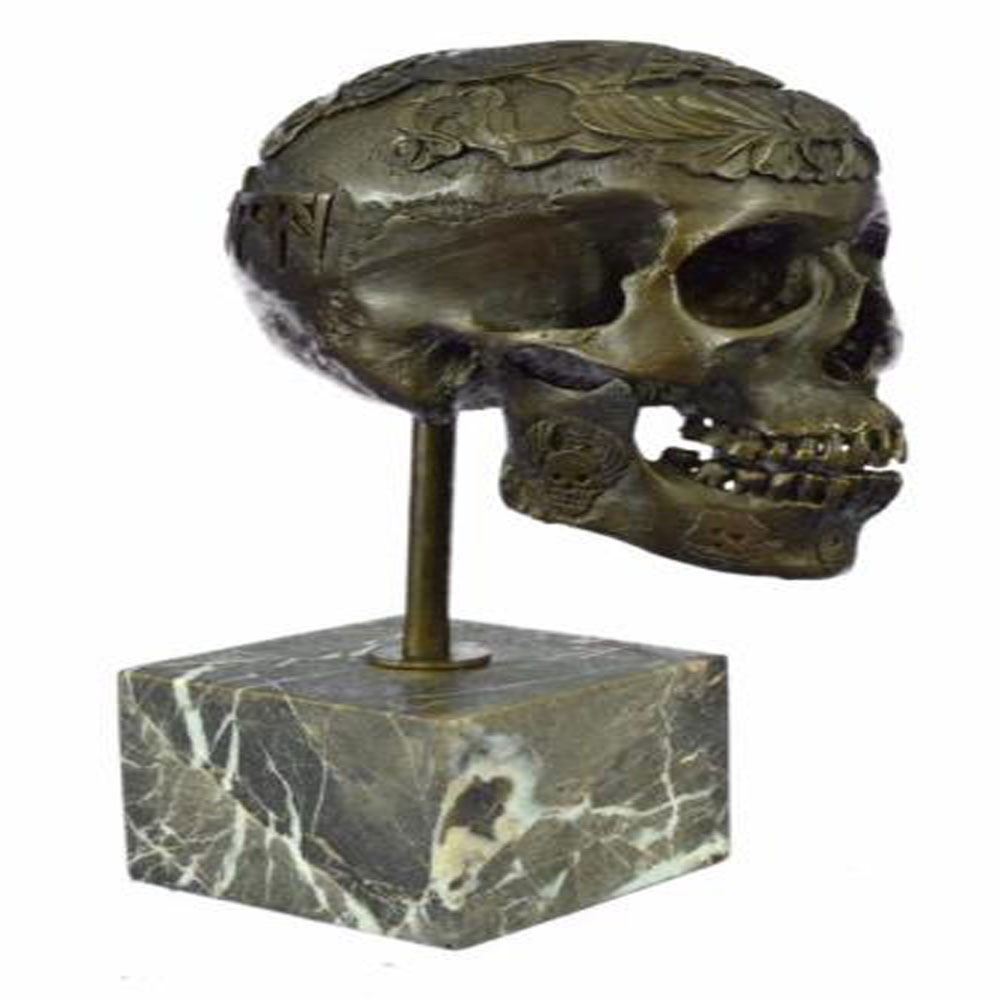 This is the most creepiest yet most interesting at the same time sculpture. For the people that love Halloween or simply find weird and unique things beautiful this one is for you guys. I guess they say you don’t have to be gorgeous to be beautifully nice, with a piece of art like this one you will start a conversation up with anyone. This skeleton it casted using the ancient old Lost Wax Method stained in a resin off white or gray patina. This sculpture is mounted atop a marble base. Bronze Dimensions with Marble Base: Height 14 X Width 10 Inches. Weight: 12 LBS.