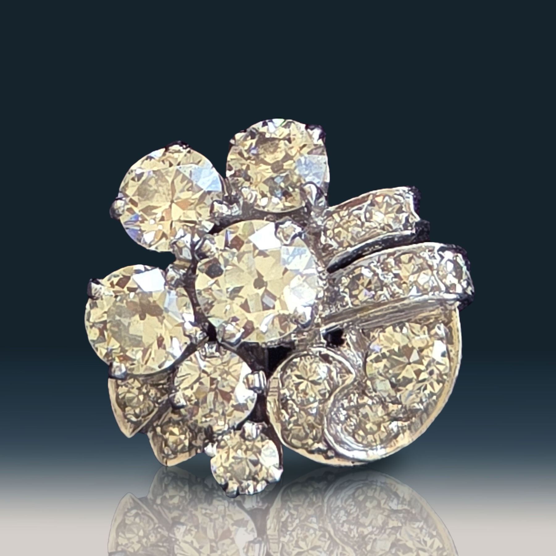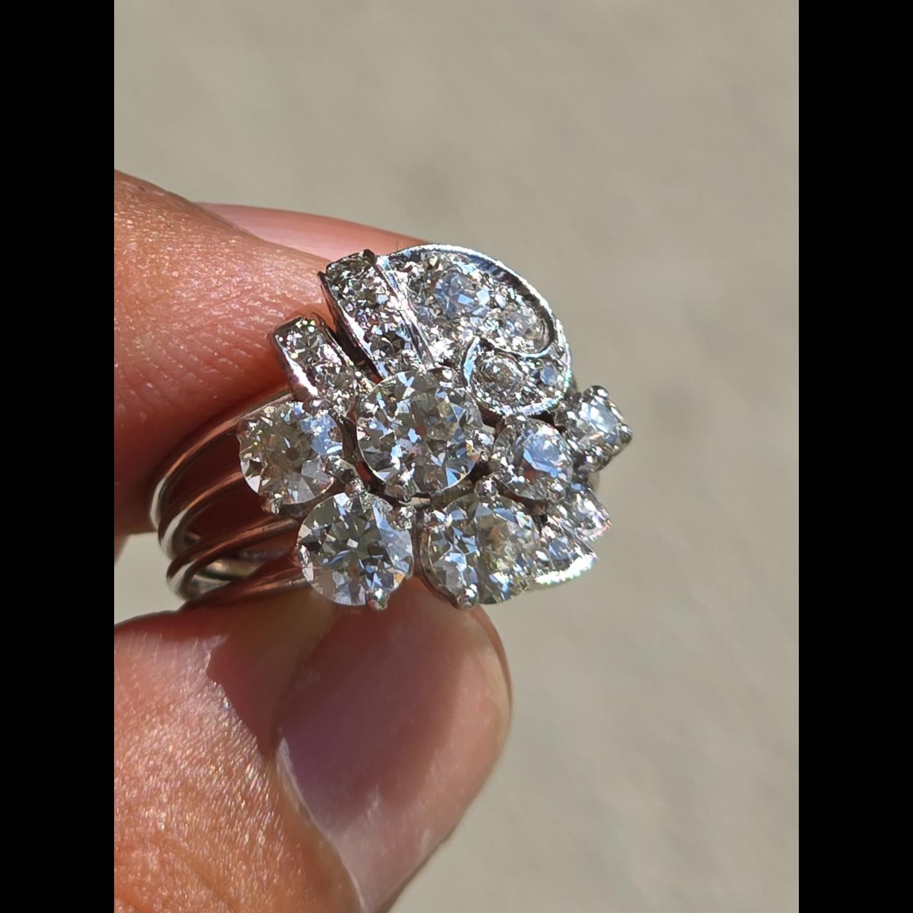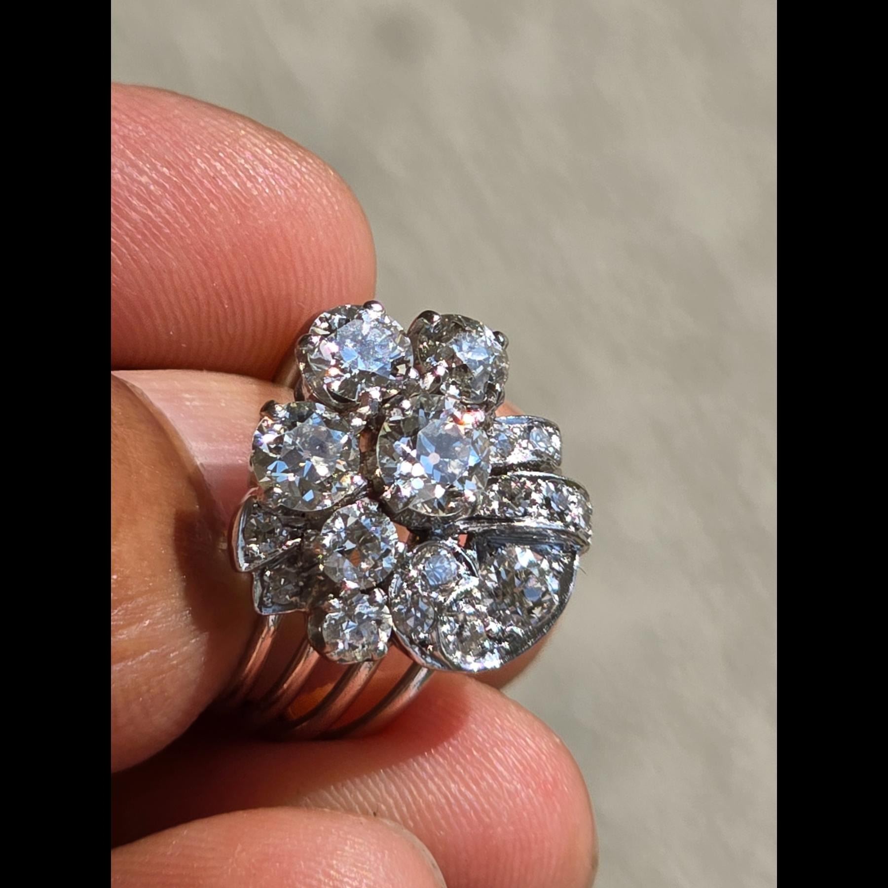 Hand Crafted Ladies Diamond Cluster Style 14K White Gold Ring, 1.58 Total Diamond Weight