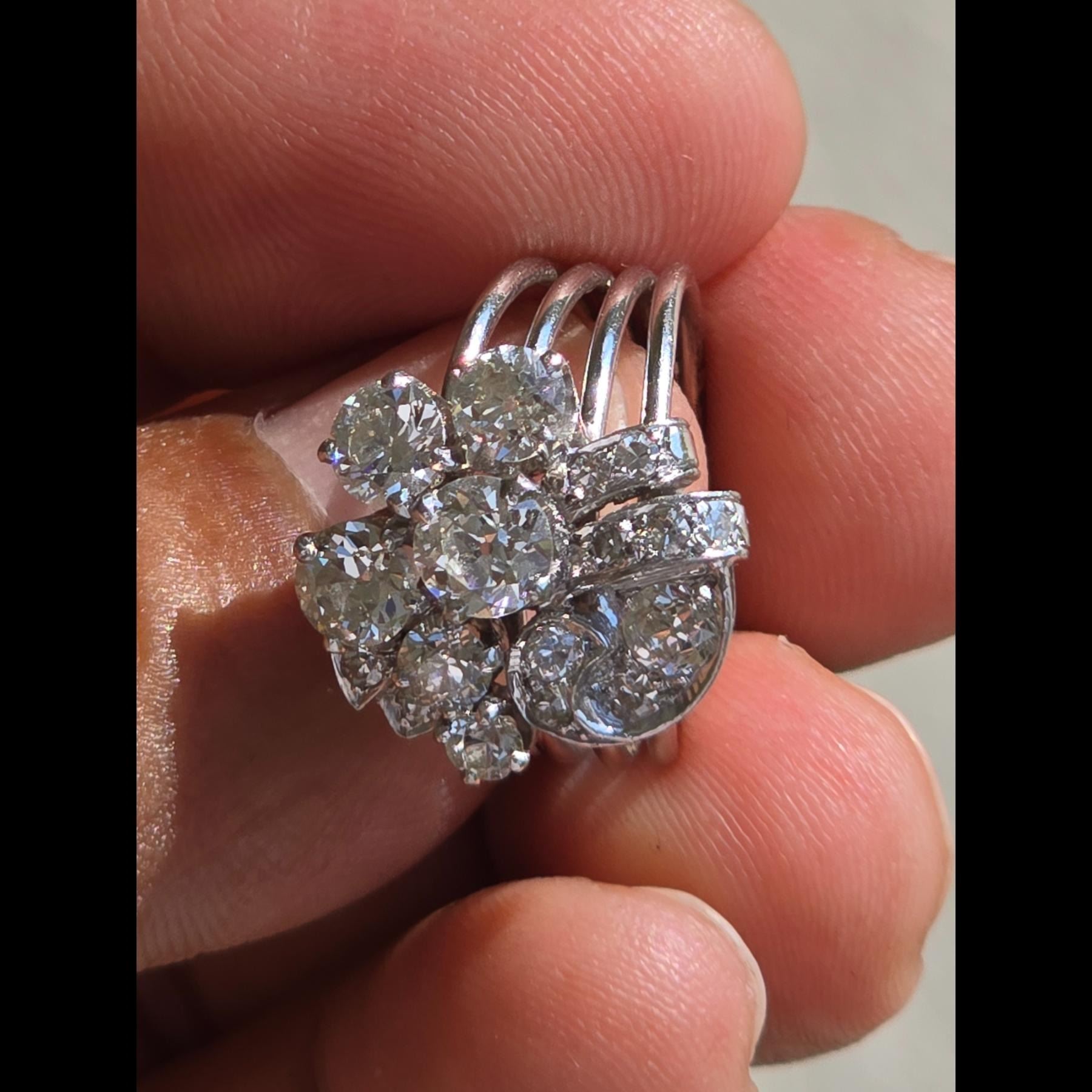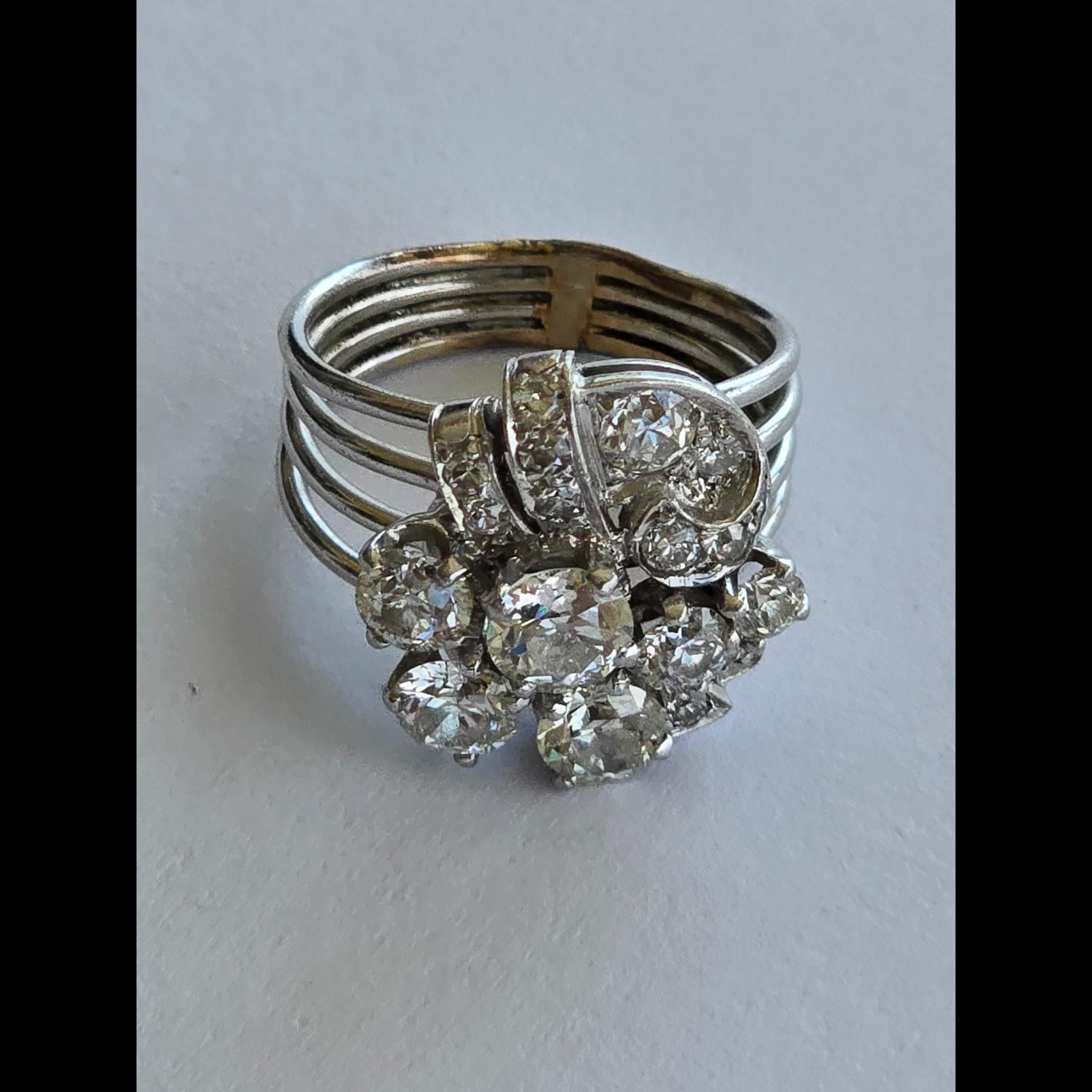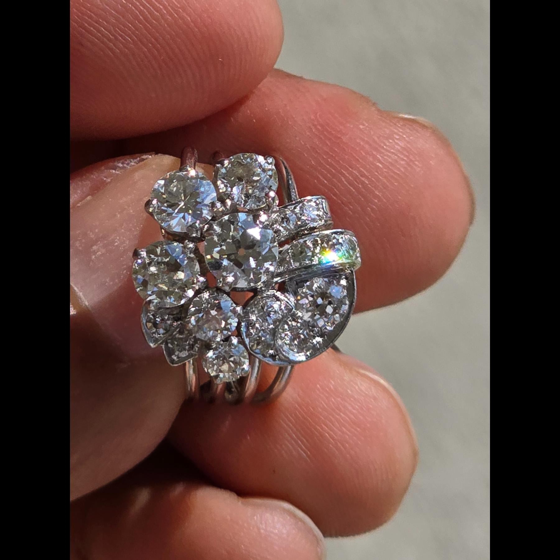 Hand Crafted Ladies Diamond Cluster Style 14K White Gold Ring, 1.58 Total Diamond Weight