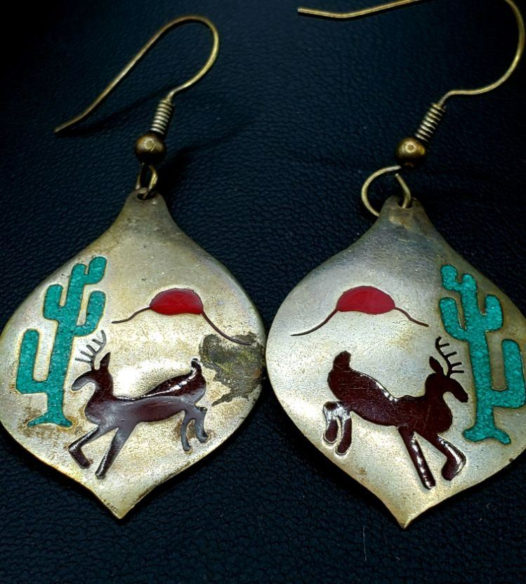 These fine Alpaca stamped earrings feature inlayed turquoise, red coral and black onyx.6.3 Total gram weight
