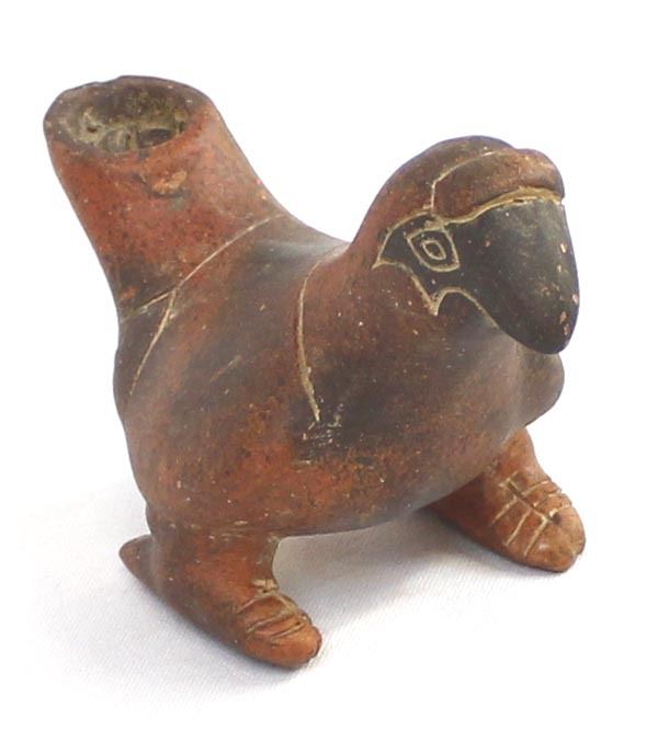 Hand CraftedMayan Style Pottery Bird, measures 3.5" x 6"
