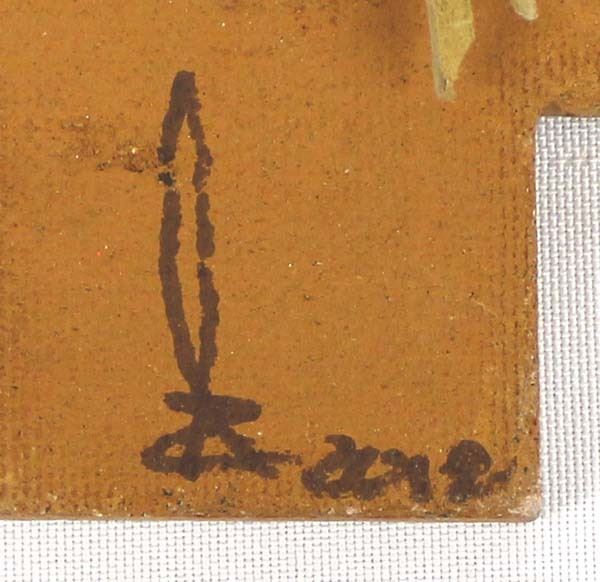 Hand Crafted Pottery Crosses and Church, includes 4 crosses and a Chapel of Holy Cross Pottery Church by P. Ronald, largest is the church that measures 3.75'' x 4.5'' x 1.5'' and is signed, the 4 crosses have the artist's initials on the back