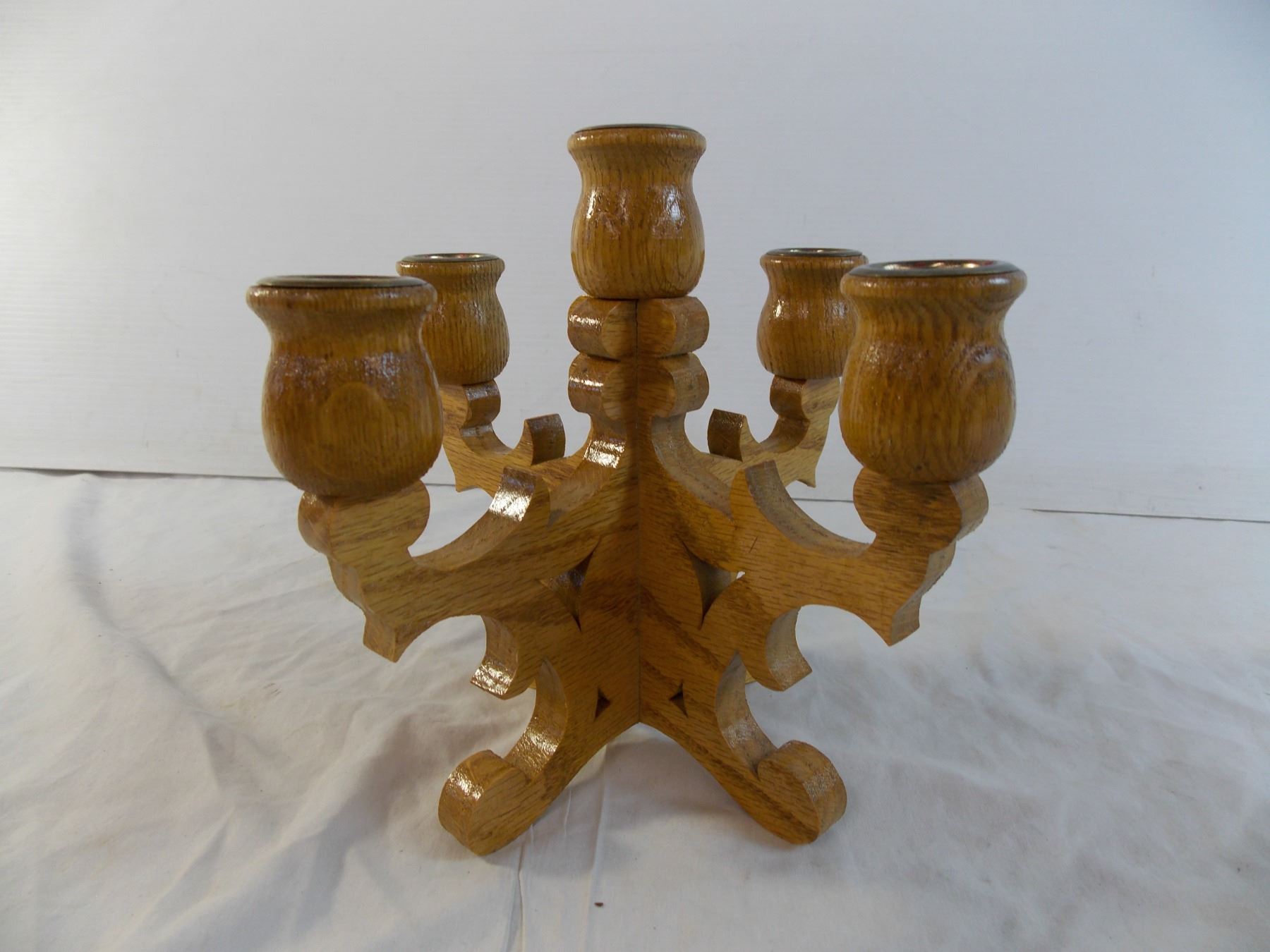 Hand Crafted Solid Oak Candle Holder - 1950's