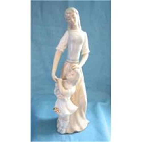 This beautiful Tengra porcelain figurine of a mother and her child was hand detailed and crafted in the tradition of the most prominent Valencian figurine artisans and marked on it's original label: Tengra/with a T in a G/Made in Spain. It is also artist signed Lo on the bottom. <BR>Tengra was founded in 1961 by Joaquin Ten Paus in a small study in Quart de Poblet. Registering the trademark in 1971. <BR>Their work is very similar to Lladro and their quality is also, the details and colors alike, this figurine would look wonderful in a childs room. Exquisitely done from the mothers fingers touching the child to the child holding her doll, in very good + condition it measures 13 inches tall, 4 1/4 inches wide and 4 1/4 inches deep. A lovely addition to any Tengra Figurine Collection. <BR>SH & Ins. will be quoted after orders placed. If you have questions please contact me and thank you for looking.