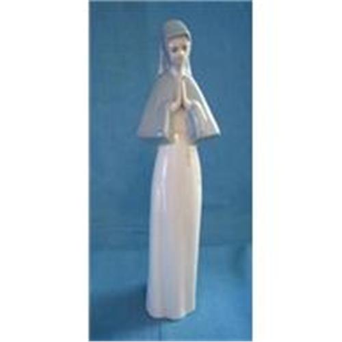 This beautiful Tengra porcelain figurine of a nun was hand detailed and crafted in the tradition of the most prominent Valencian figurine artisans and marked on bottom: Made in Spain and artist signed Lo Porceval. <BR>Tengra was founded in 1961 by Joaquin Ten Paus in a small study in Quart de Poblet. Registering the trademark in 1971. <BR>Their work is very similar to Lladro and their quality is also, the details and colors alike, this figurine would look wonderful in a childs room. Exquisitely done she is in very good + condition and measures 10 1/2 inches tall, 3 inches wide and 2 3/4 inches deep. A lovely addition to any Tengra Figurine Collection. <BR>SH & Ins. will be quoted after orders placed. If you have questions please contact me and thank you for looking.