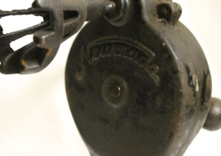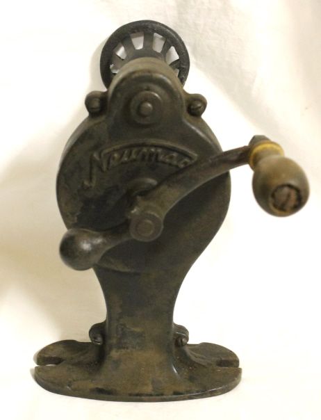 Hand Crank Cast Iron Corn Sheller/Nubber marked "Neumade" on both sides. Very unusual. 8 3/4" tall, 9" wide from end of nubber to outside of handle. This was used for seed corn.