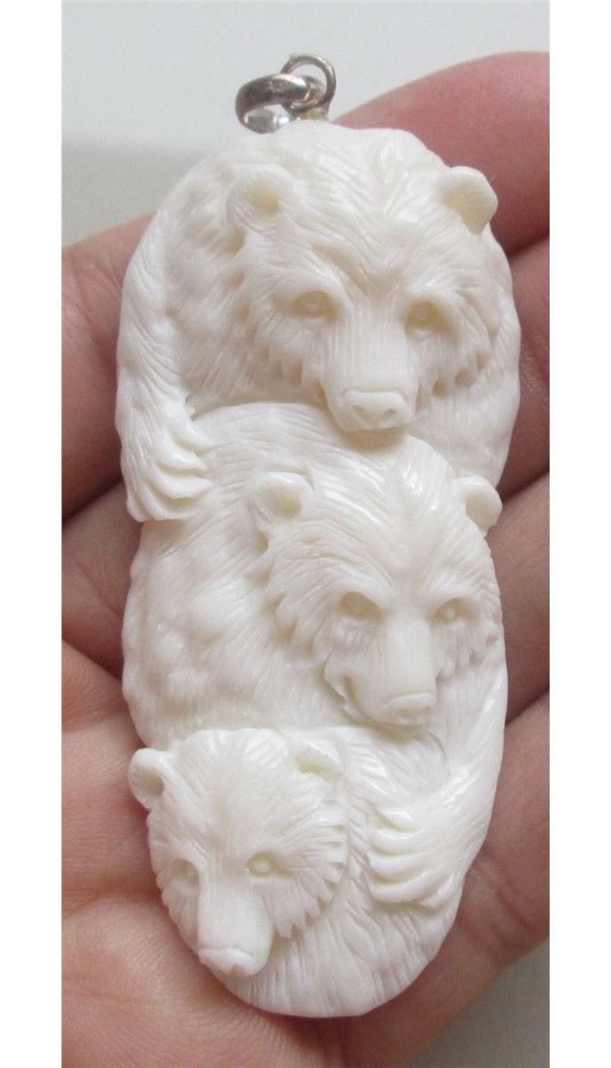 Hand Craved Bear Family Pendant......size...63 x 29 mm