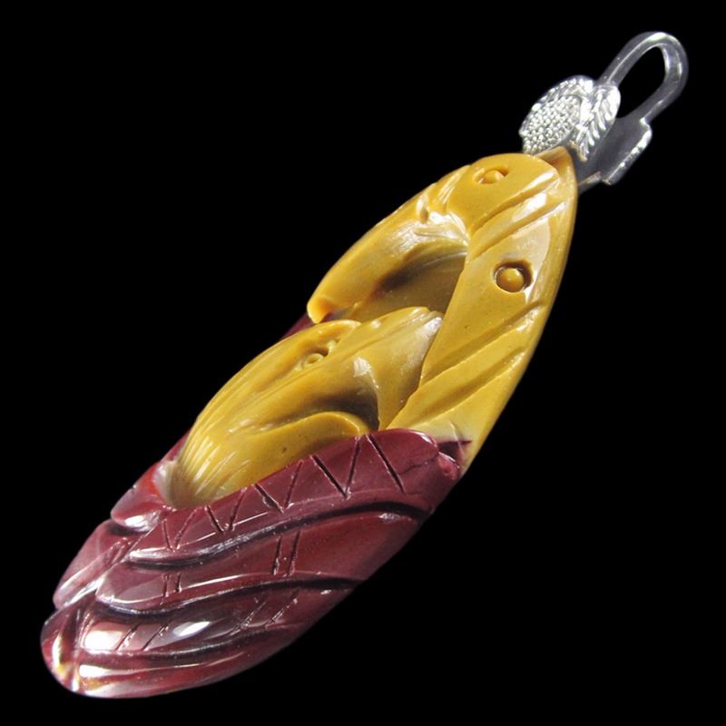 This is a hand carved Eagle Pendant*Stone Name Mookaite *Overall Dimension 74x30x14 mm (2.913x1.181x0.551 inch )mm *Weight 155 ct/ 31 g/ 1.093494 oz *Mohs Hardness 6-7 *Source Natural *Treatments None *Drilled YES diameter 2.5/36-3/36 inch *This Eagle bead is handcarved out of one piece of gemstone Mookaite .The creative design of each item is based on the stone's natural color and pattern and it demands great craftmenship and patience to complete . This beauty is absolutely a unique center piece for your jewelry design. .