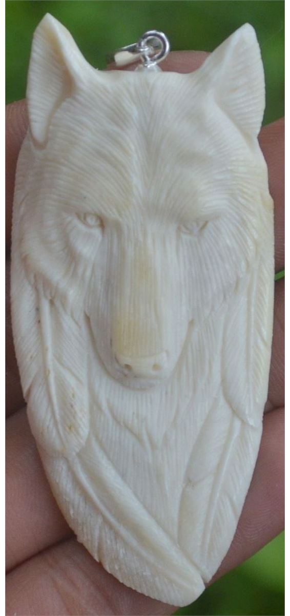Hand Craved Pendant.......Wolf head.......size 69 mm