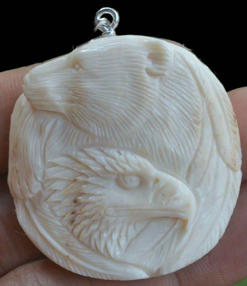Hand Craved Pendant on antler.............Bear & eagle...size 39 mm
