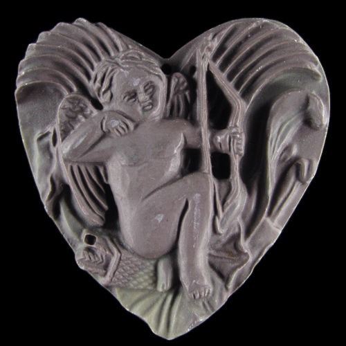 Hand carved Cupid pendant......*Stone Name Ribbon Jasper *Overall Dimension 63x60x12 mm (2.480x2.362x0.472 inch )mm *Weight 295 carat*Color coffee-greenish and purple strip - orbicular patterns *Mohs Hardness 7 *Source Natural *Treatments None *Drilled YES diameter 2.5/36-3/36 inch *This Cupid Pendant is carved out of one piece of gemstone Ribbon Jasper . This beauty is absolutely a unique center piece for your jewelry design. .