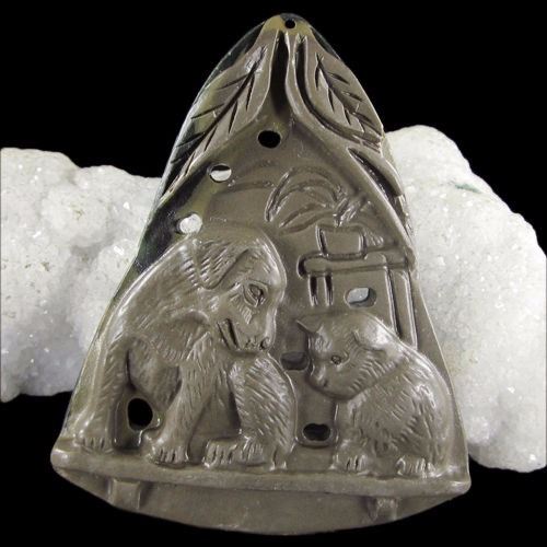 Hand carved Dog Pendant....Mama dog and cub; Stone Name Ribbon Jasper *Overall Dimension 73x60x10 mm (2.874x2.362x0.394 inch )mm *Weight 235 carat**Mohs Hardness 7 *Source Natural *Treatments None *Drilled YES diameter 2.5/36-3/80 inch *Other Names Banded Jasper Jasperine Ribbon Jasper Striped Jasper*This Dog pendant is carved out of one piece of gemstone Ribbon Jasper . This beauty is absolutely a unique center piece for your jewelry design. .