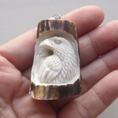 Hand Craved Raven Pendant from antler.....Size : 42 mm x 26 mm