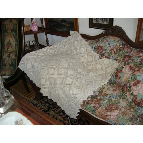 Beautiful Handmade Crocheted Bedspread or Table cover. Hundreds of hours to make cotton into something of beauty and an heirloom.