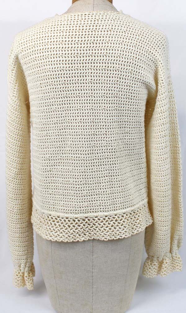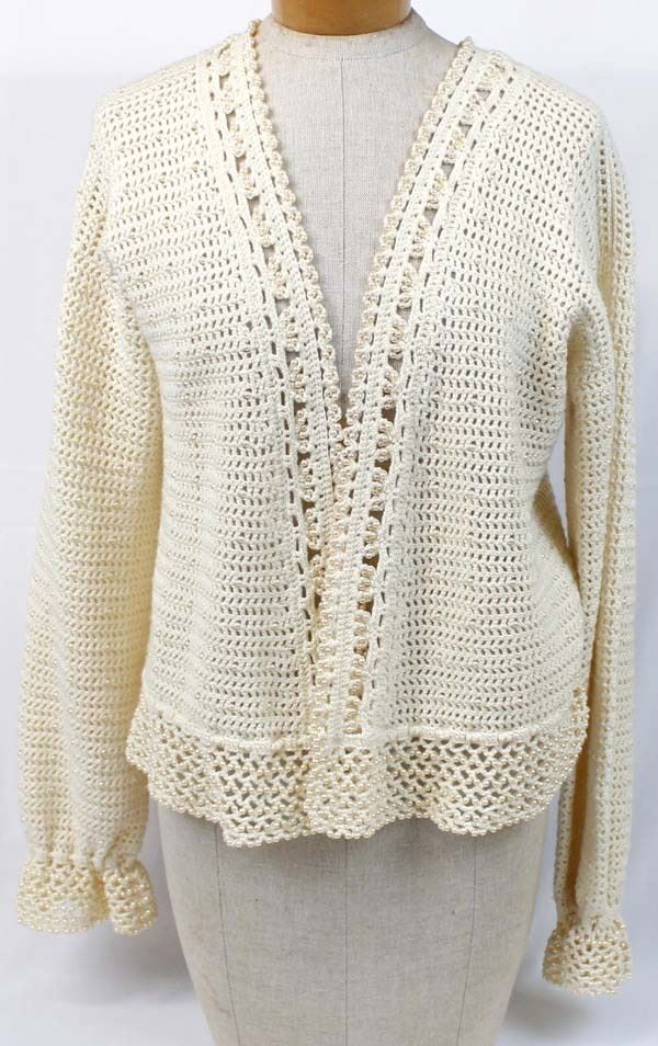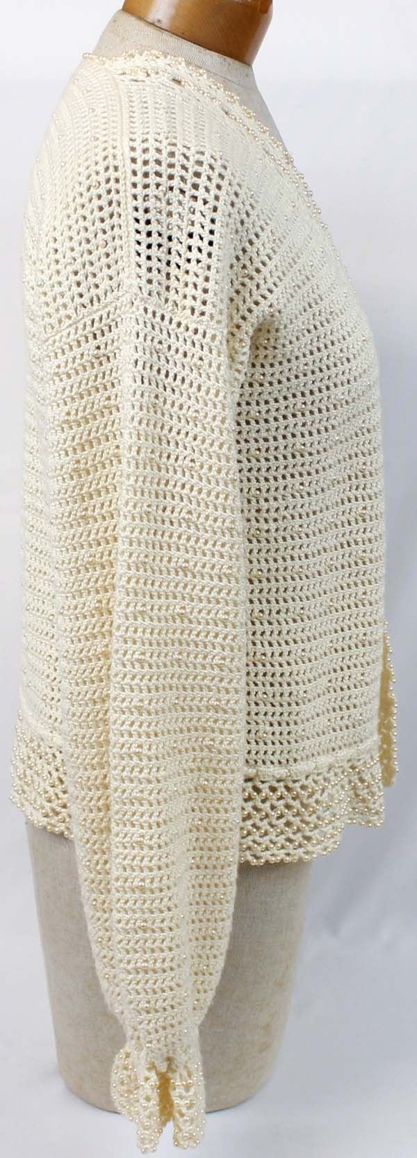 Hand Crocheted Sweater with Pearl Accents by Janice Tripp, size M-L, elegant cream colored sweater